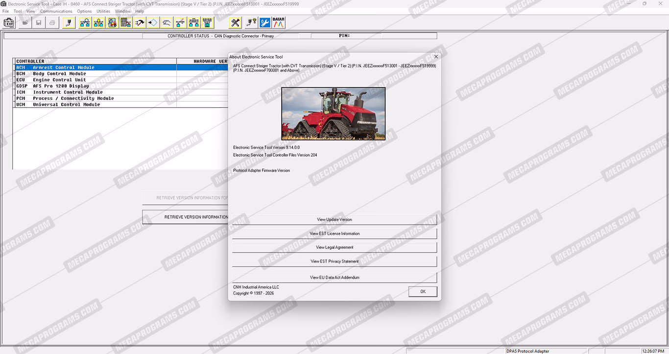 | Description | CNH EST 9.14 Update 1 features controllers 204 for advanced data logging, hidden option programming in vehicles, and raw message simulation. |