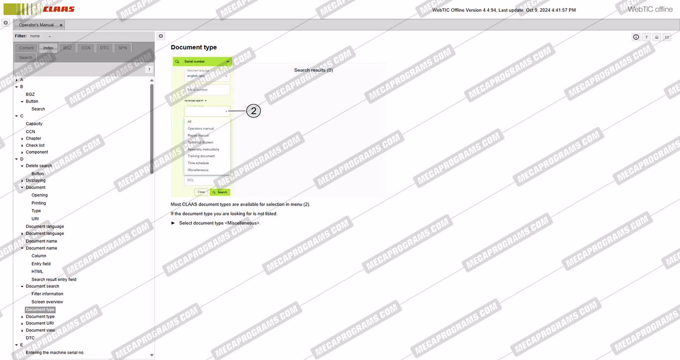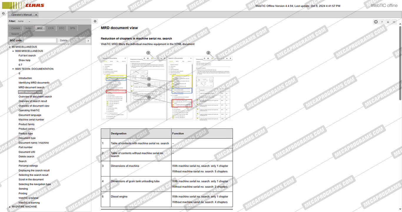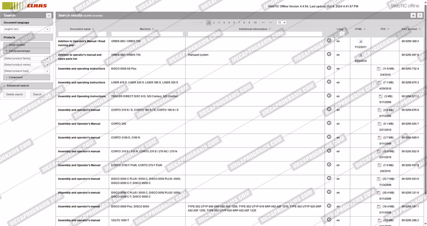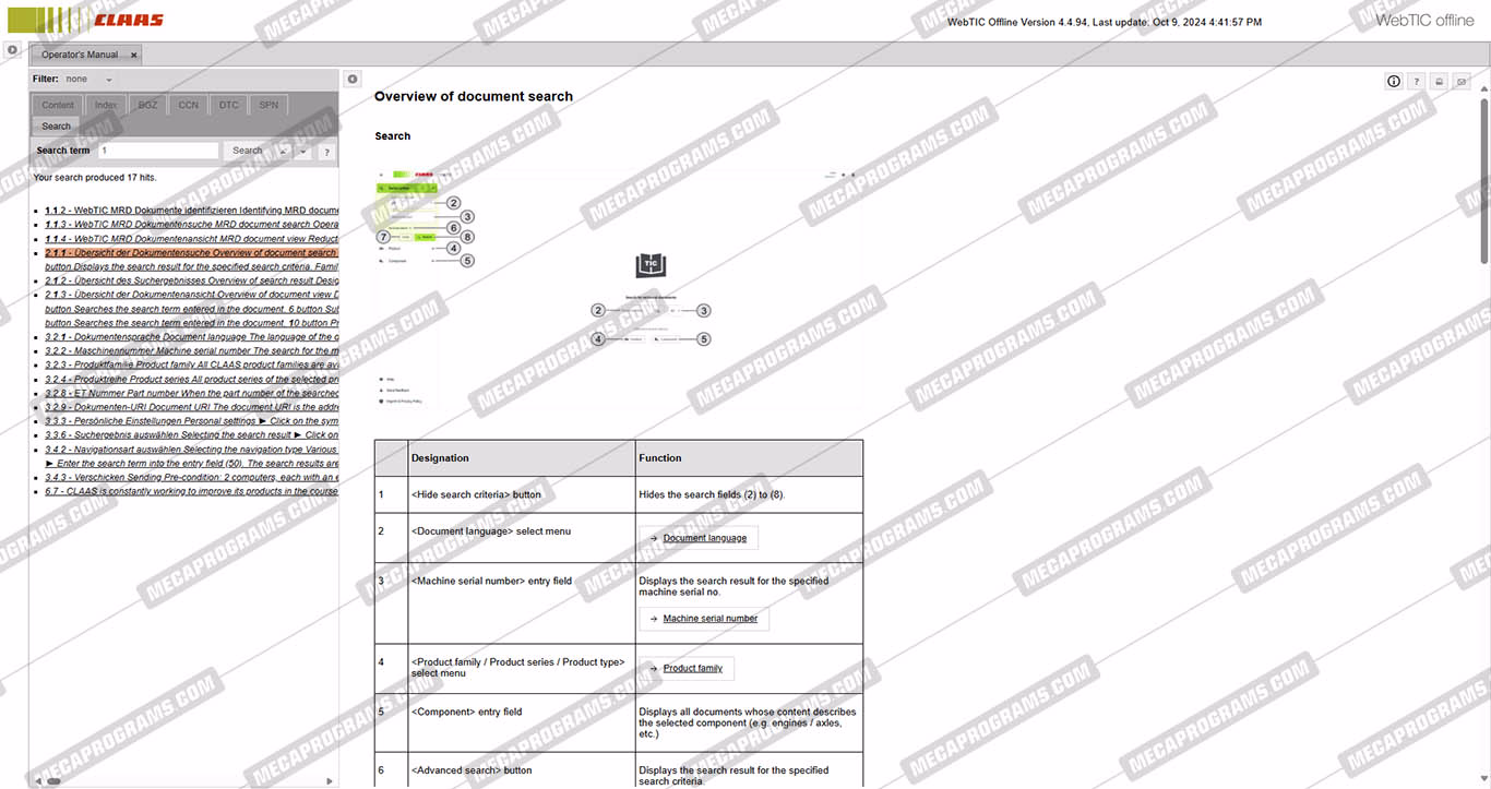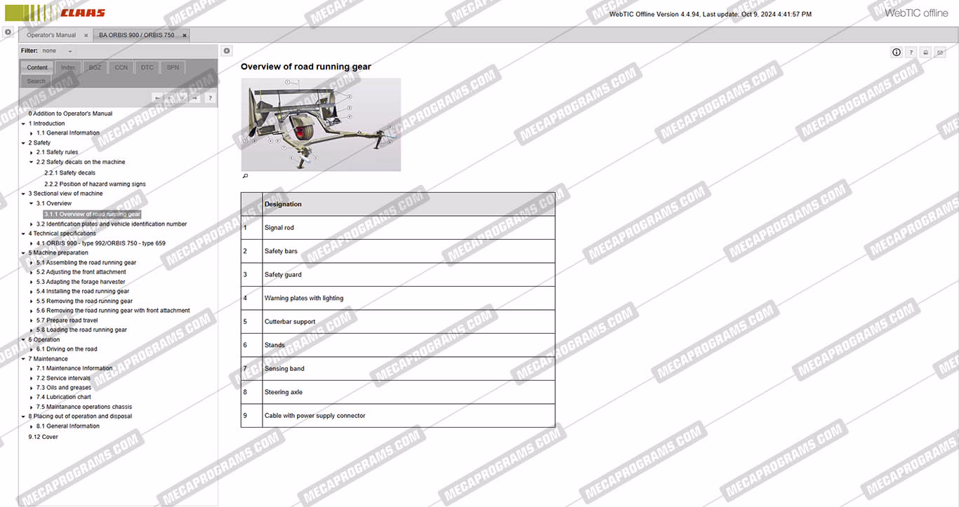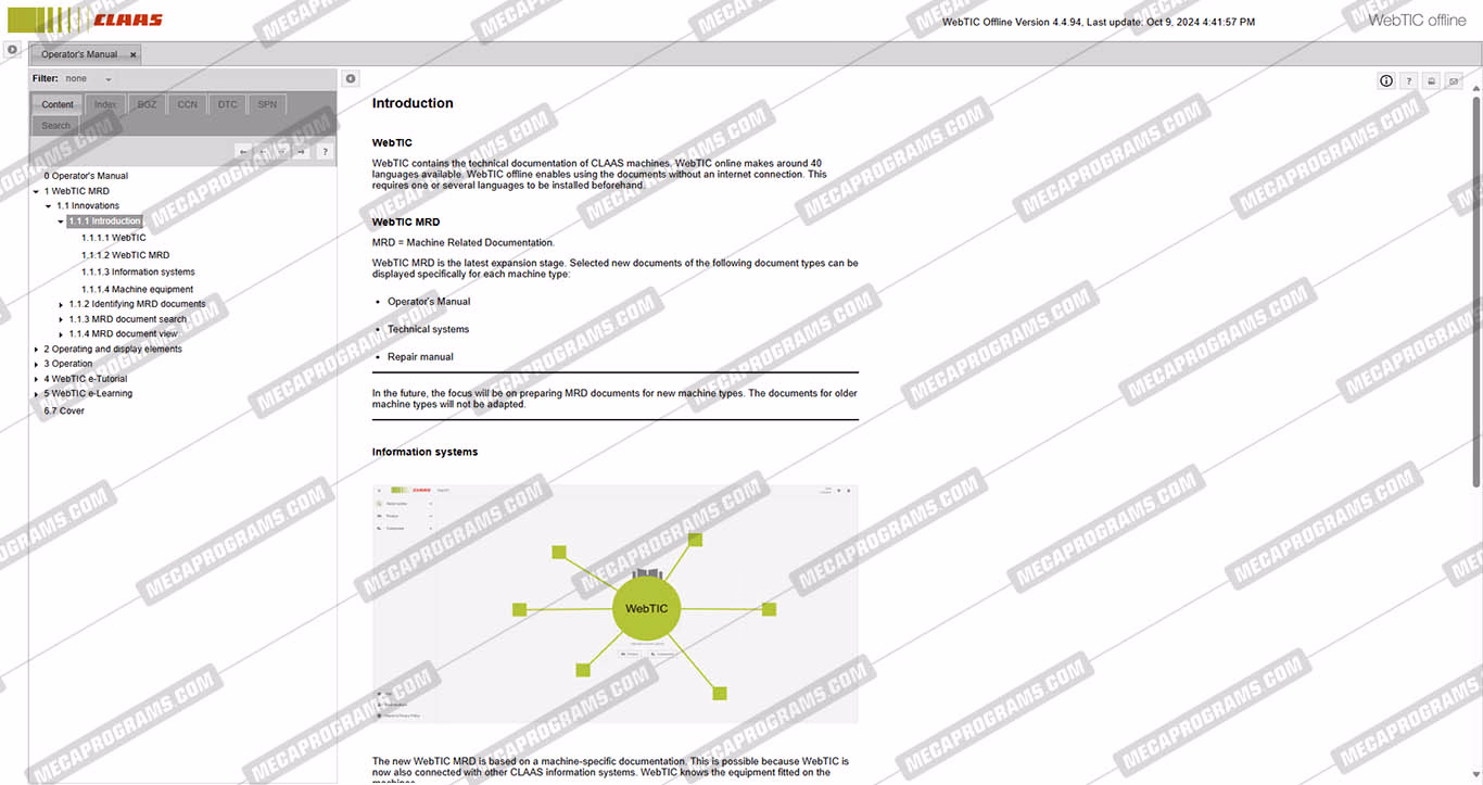 | Description | Claas webtic offline contains repair and service information, operator manuals, repair manuals, service documentation for all models of claas agricultural equipment, including forage harvesters, combines, balers and tractors. |