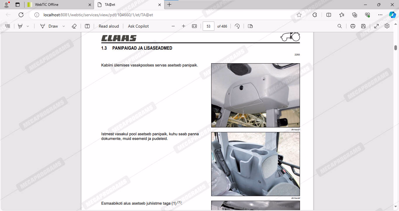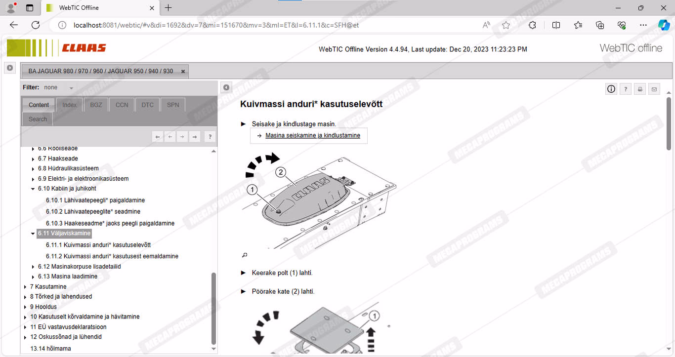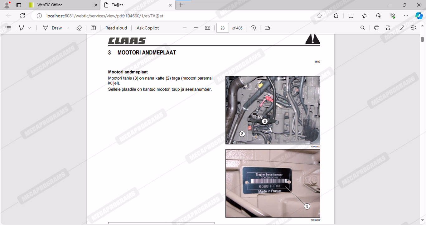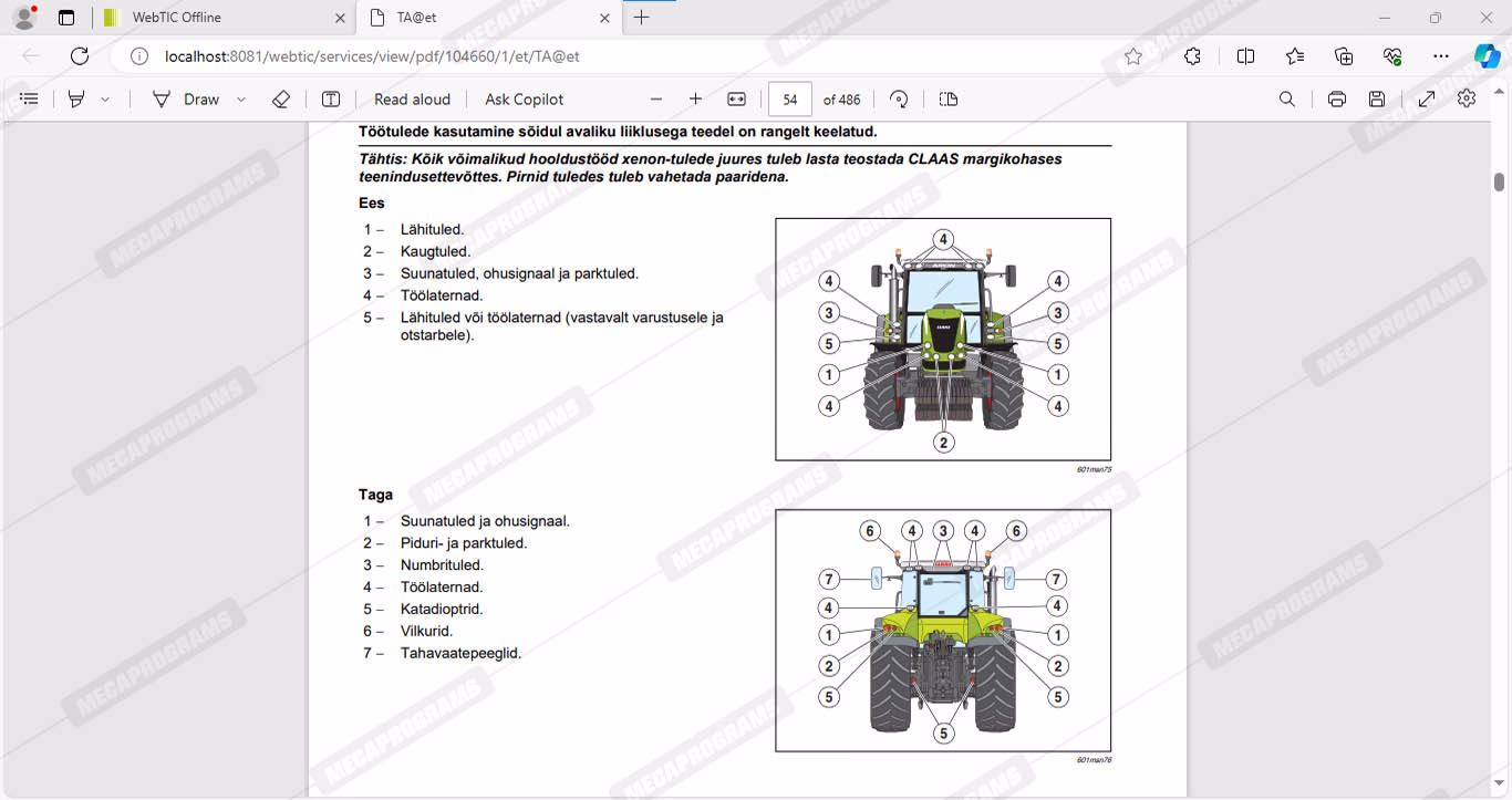 | Description | Claas webtic offline contains repair and service information, operator manuals, repair manuals, service documentation for all models of claas agricultural equipment, including forage harvesters, combines, balers and tractors. |
