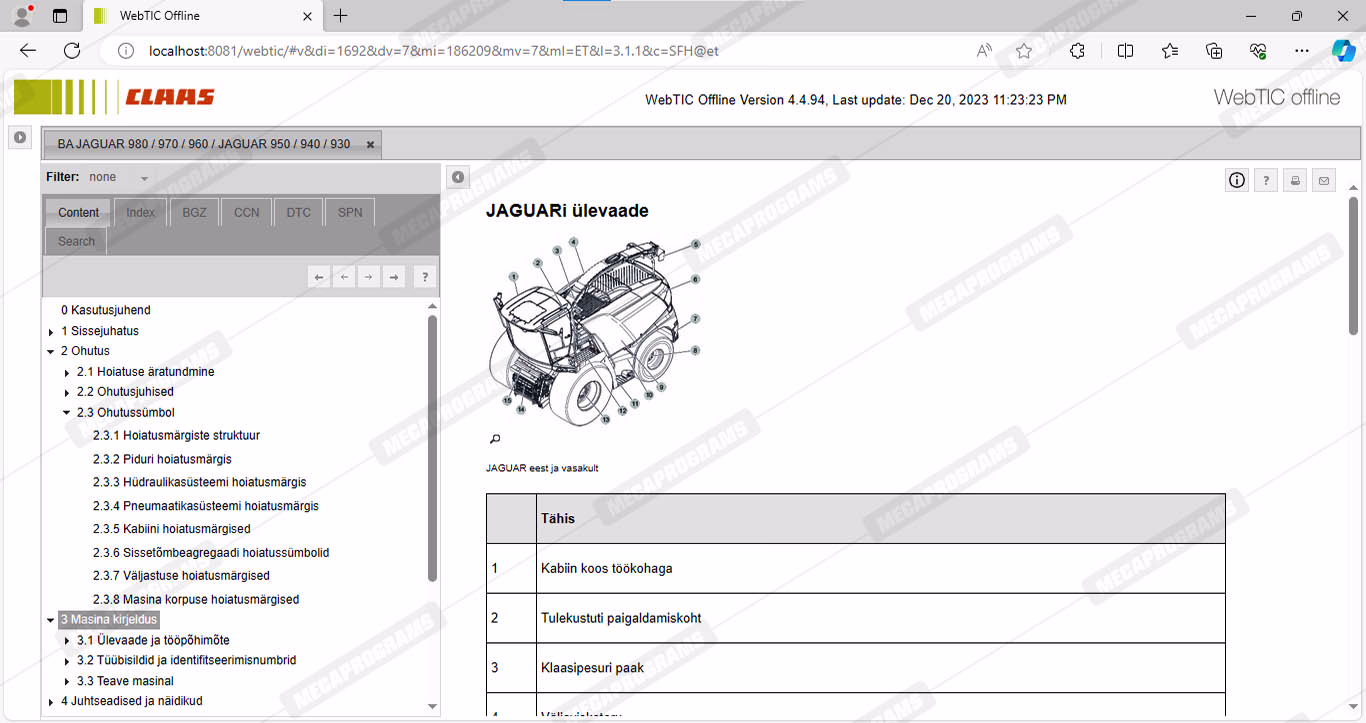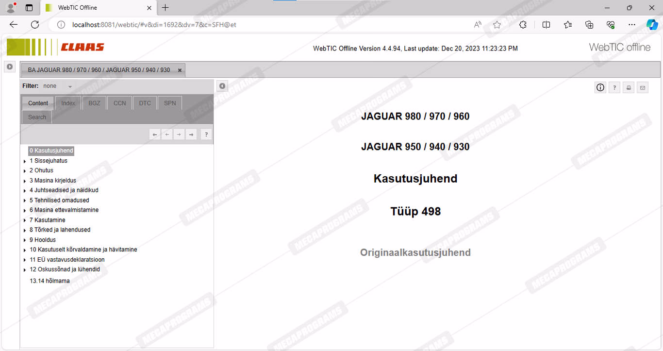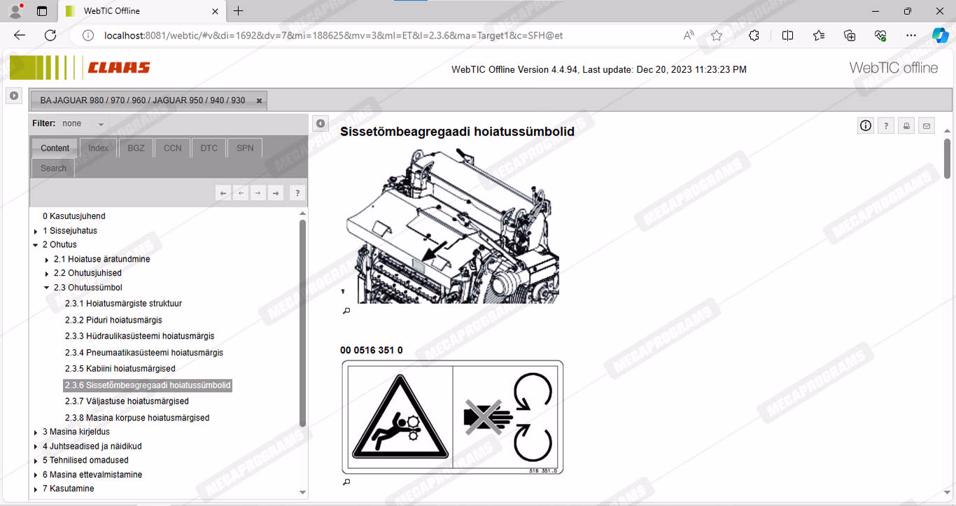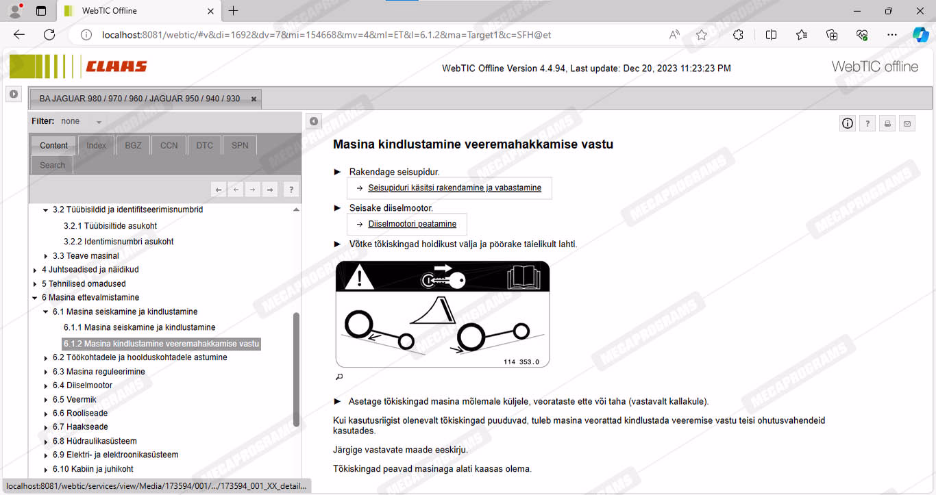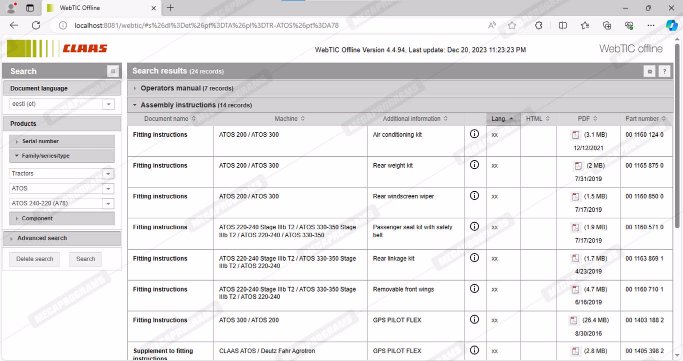 | Description | Claas webtic offline contains repair and service information, operator manuals, repair manuals, service documentation for all models of claas agricultural equipment, including forage harvesters, combines, balers and tractors. |