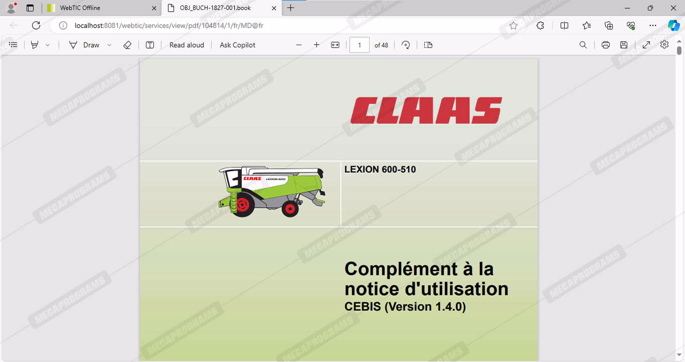 | Description | Claas webtic offline contains repair and service information, operator manuals, repair manuals, service documentation for all models of claas agricultural equipment, including forage harvesters, combines, balers and tractors. |