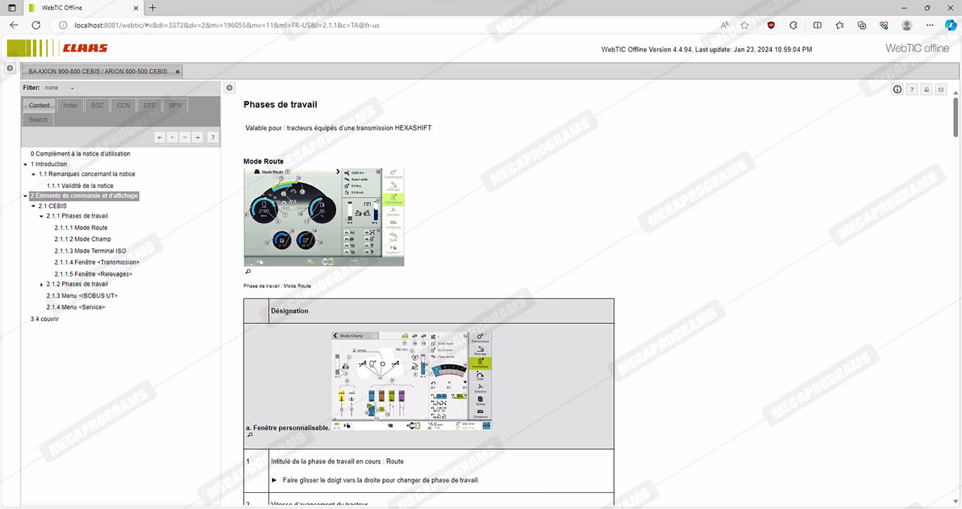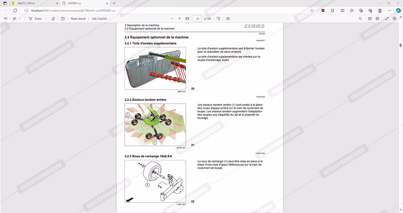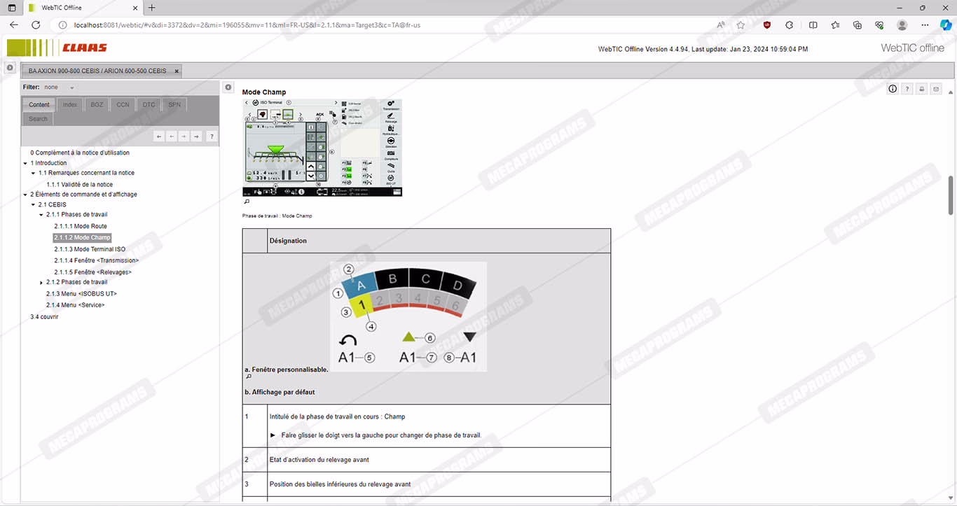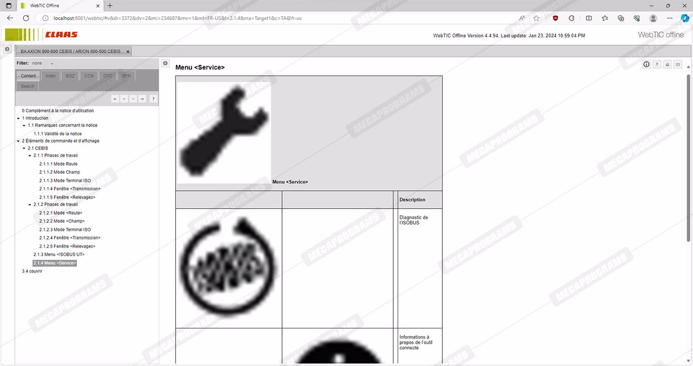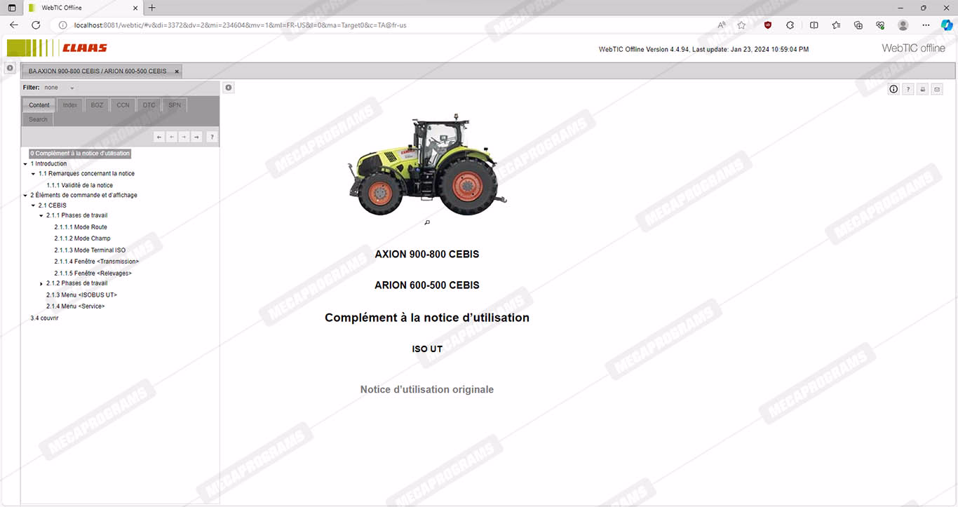 | Description | Claas webtic offline contains repair and service information, operator manuals, repair manuals, service documentation for all models of claas agricultural equipment, including forage harvesters, combines, balers and tractors. |