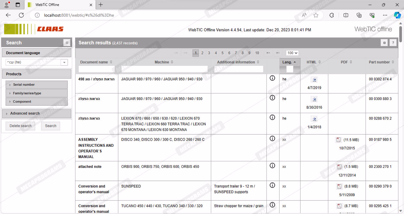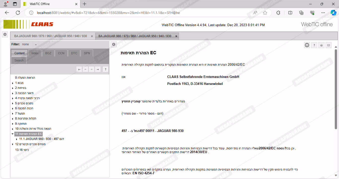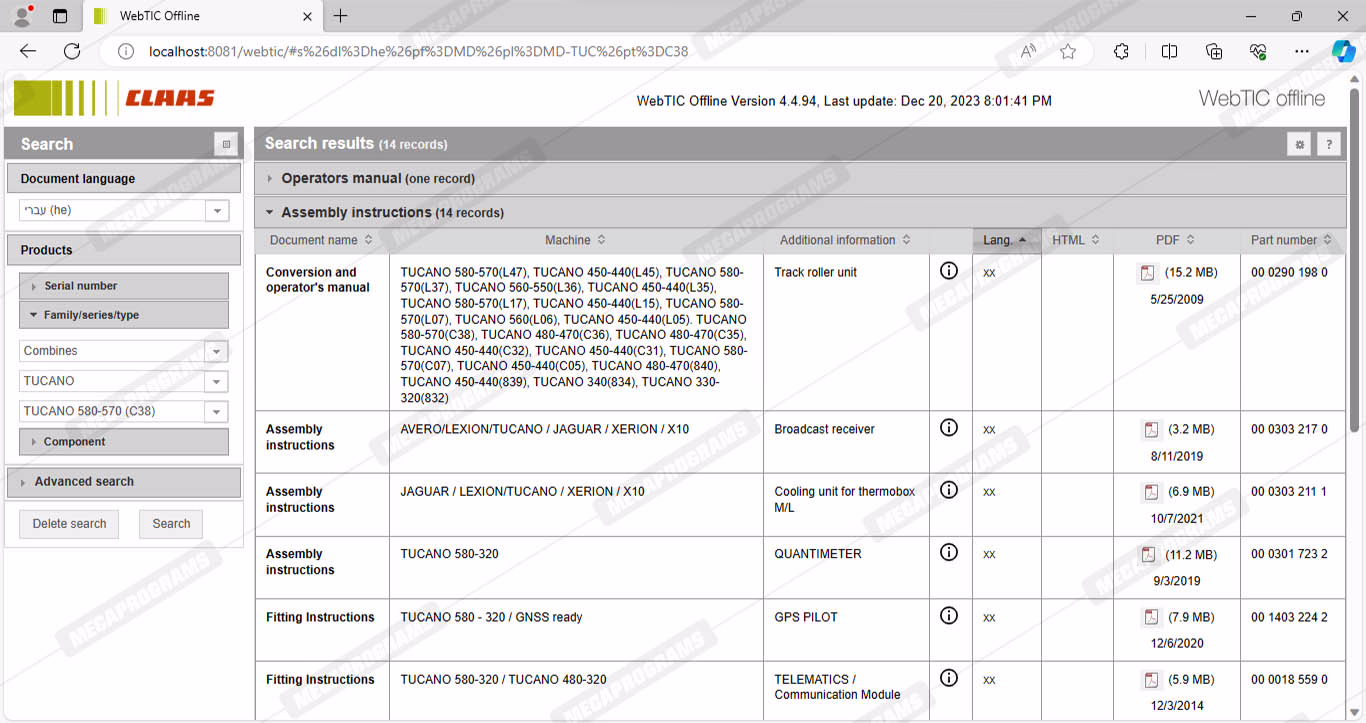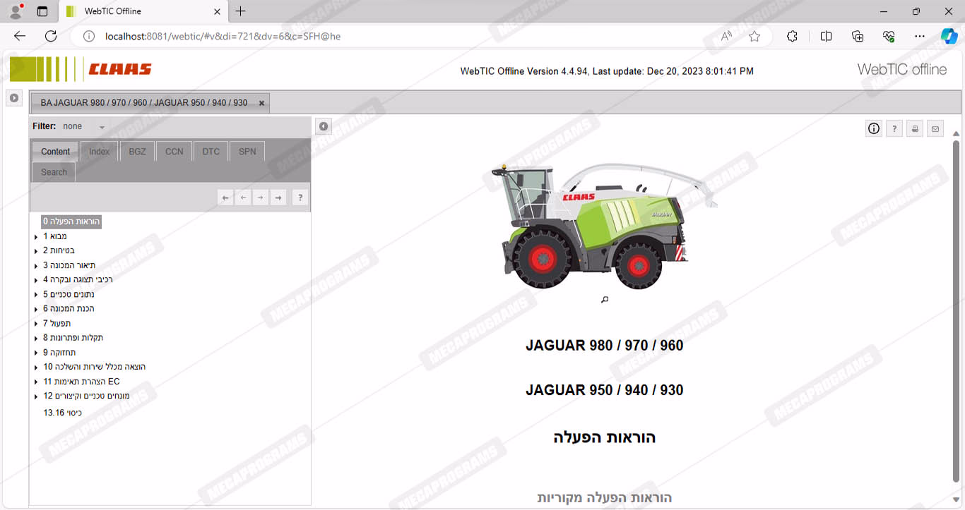 CLAAS WEBTIC OFFLINE HEBREW 4.4.94 [2023.05]