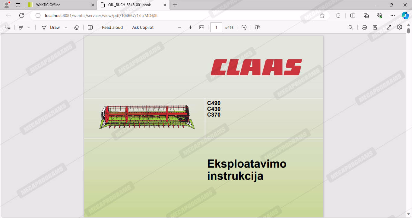 | Description | Claas webtic offline contains repair and service information, operator manuals, repair manuals, service documentation for all models of claas agricultural equipment, including forage harvesters, combines, balers and tractors. |