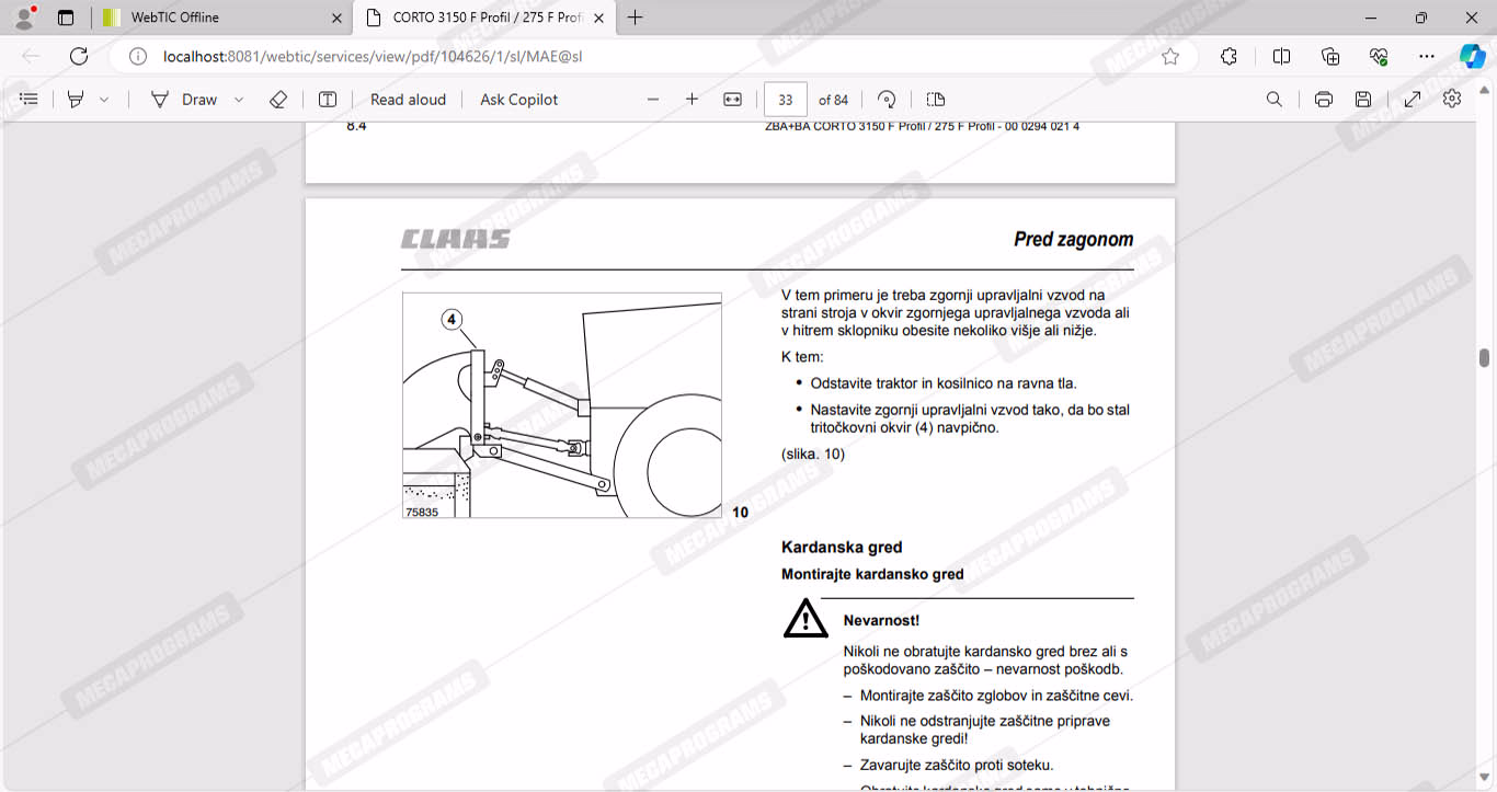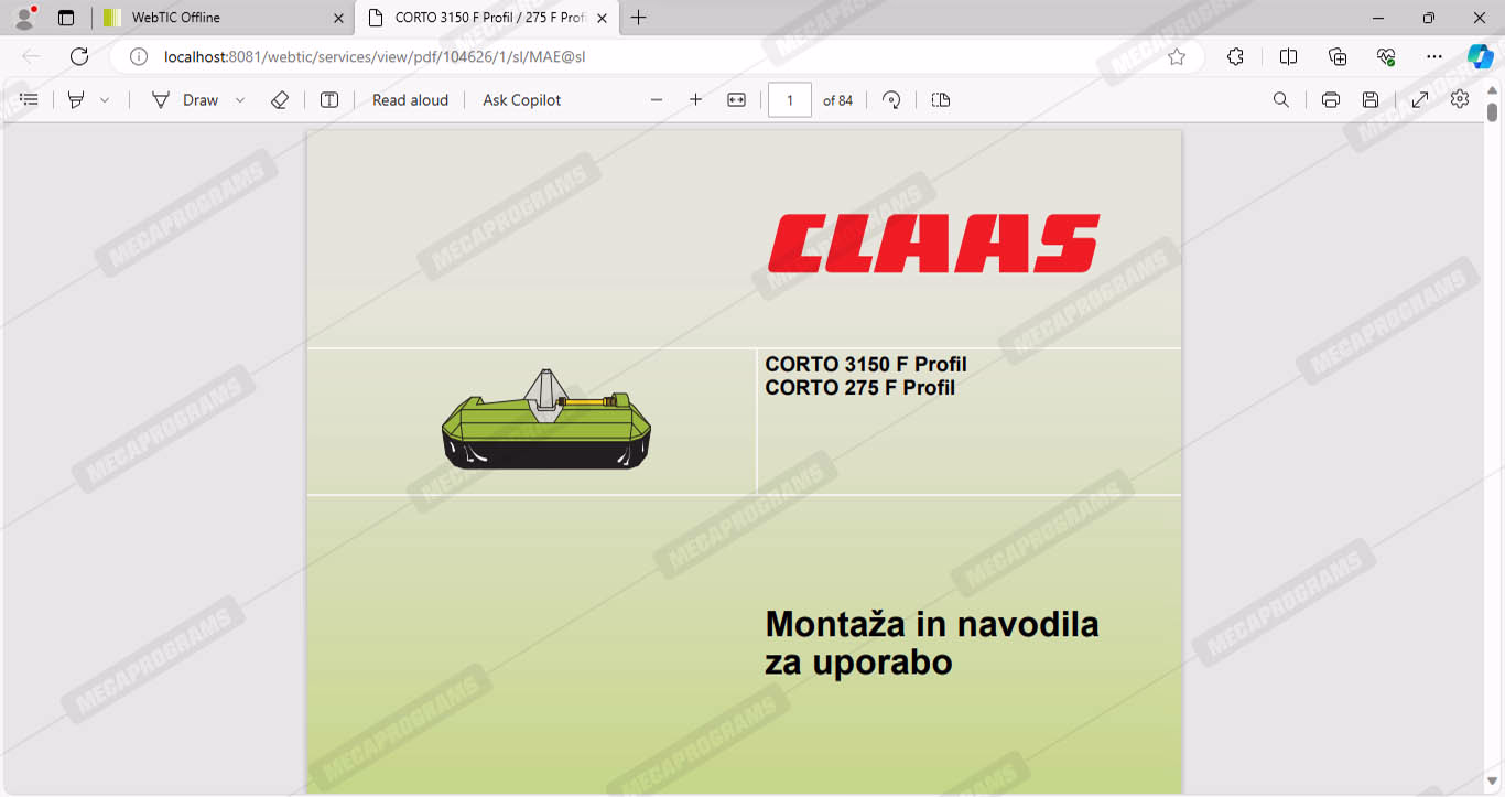 | Description | Claas webtic offline contains repair and service information, operator manuals, repair manuals, service documentation for all models of claas agricultural equipment, including forage harvesters, combines, balers and tractors. |