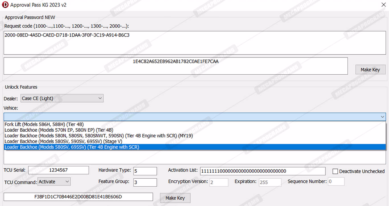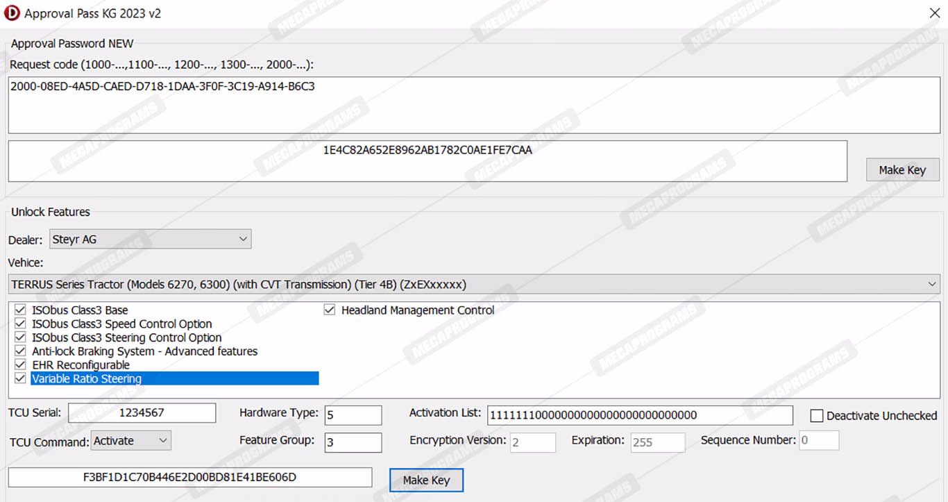 | Description | Allows to generate activation codes for advanced functions of the CNH EST software. |