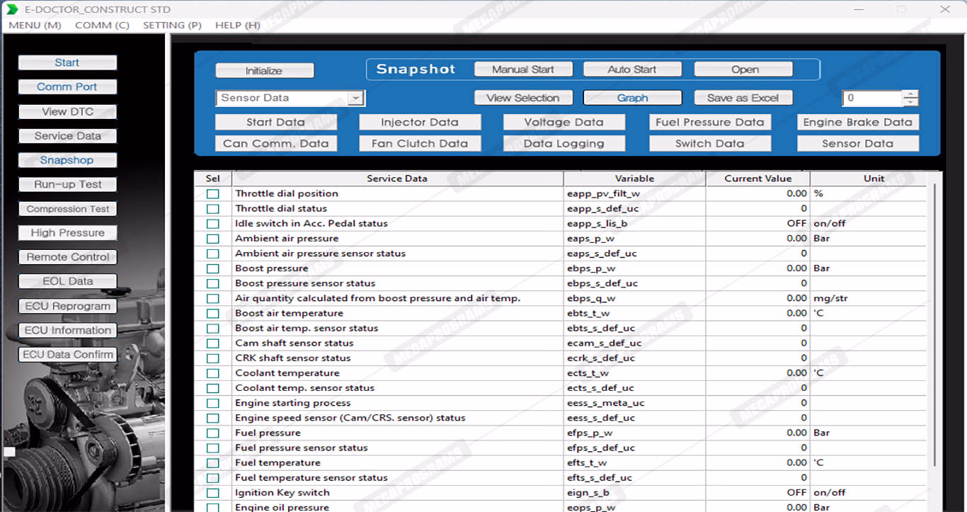 For the diagnosis of electronic fuel injection diesel engines. |