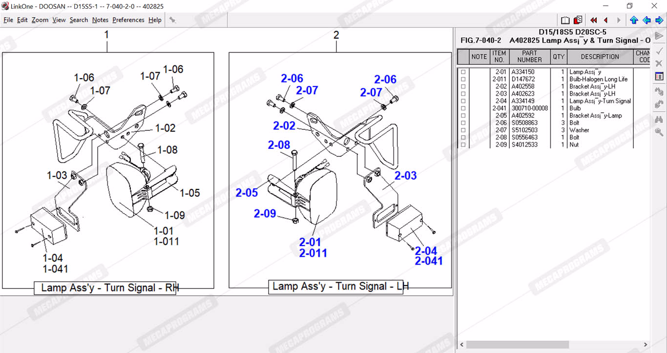 | Description | Parts catalogue for doosan forklifts. |