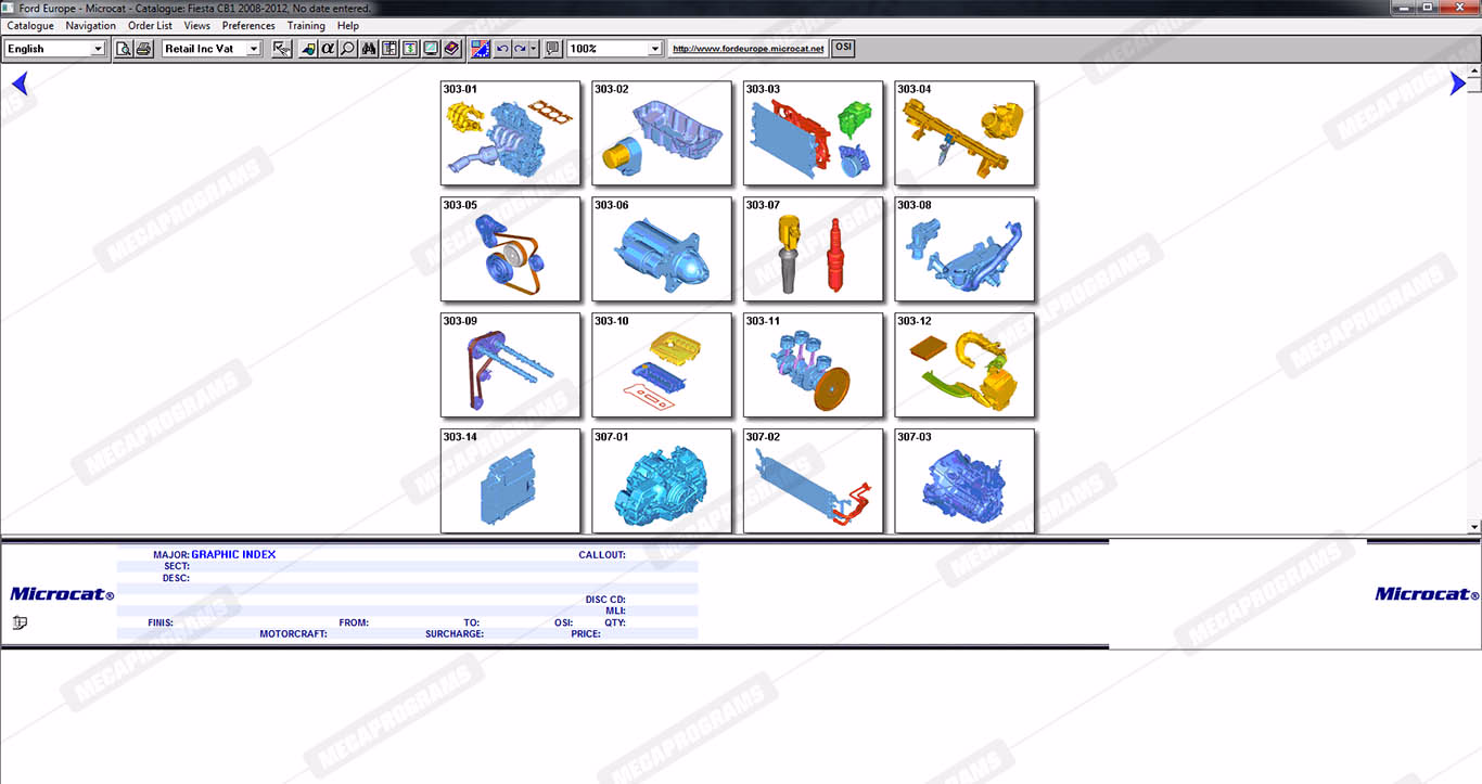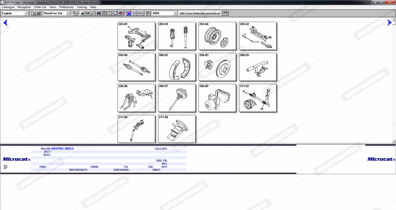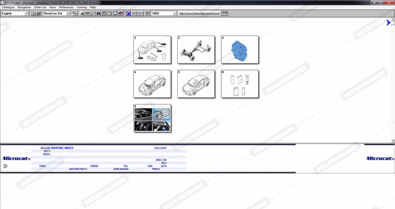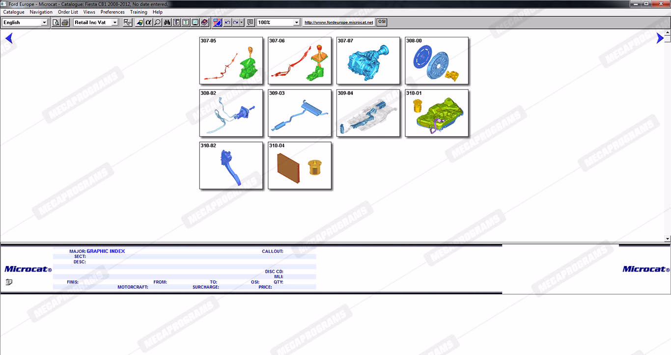 | Description | Ford Microcat Europe contains full technical information about original parts and accessories, parts books, parts manuals, service bulletins, complete information on part numbers, and images of spare parts for cars and vans ford. |