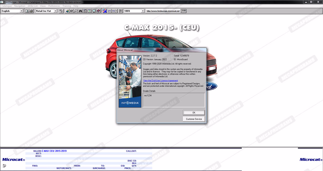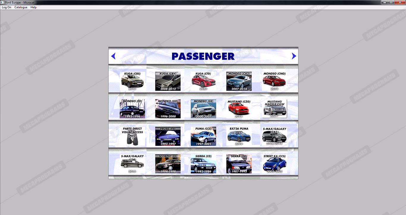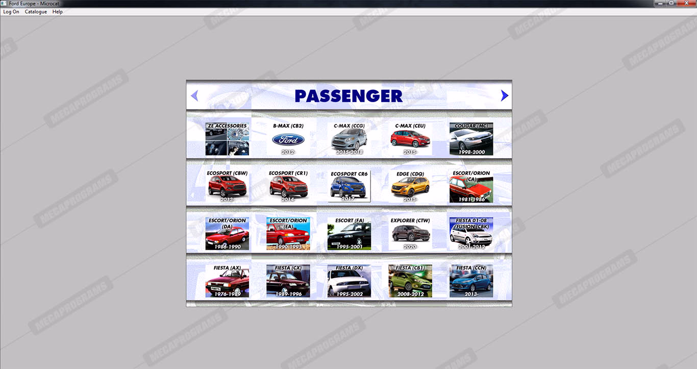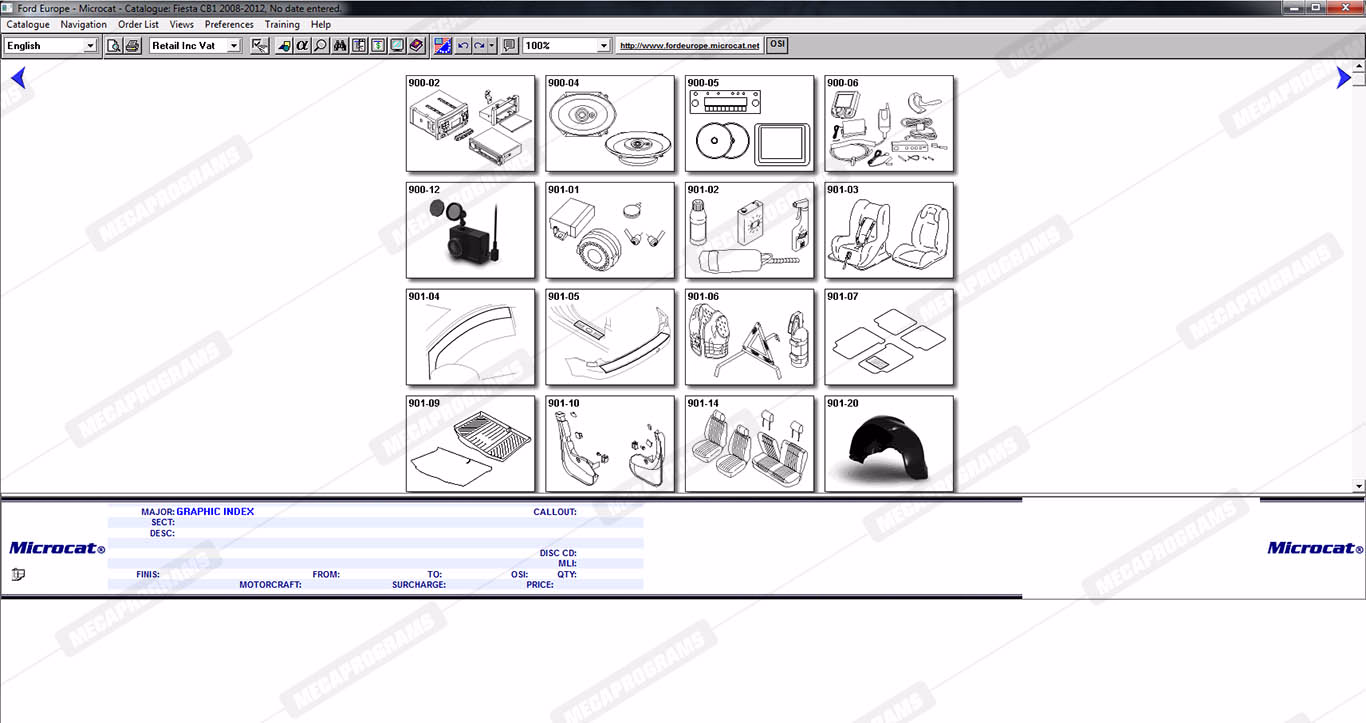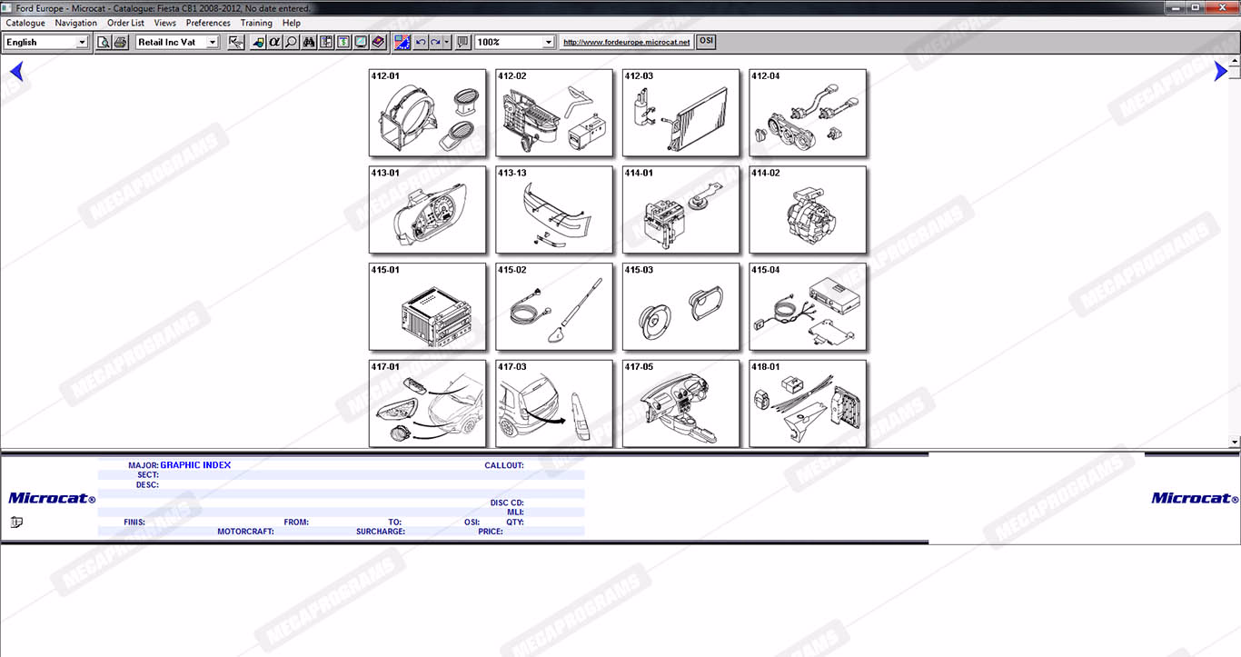| Description | Ford Microcat Europe contains full technical information about original parts and accessories, parts books, parts manuals, service bulletins, complete information on part numbers, and images of spare parts for cars and vans ford. |