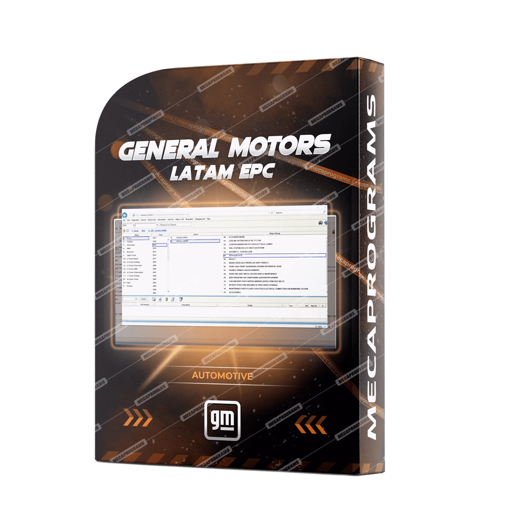 | Description | Catalog of parts from 1976 to date for passenger cars, trucks, vans, etc. (spare parts included). Buick, Cadillac, Chevrolet, GMC, Hummer, Pickups, Midsize Pickups, Oldsmobile, Opel, Pontiac, Saab, Saturn from the Latin American market. |