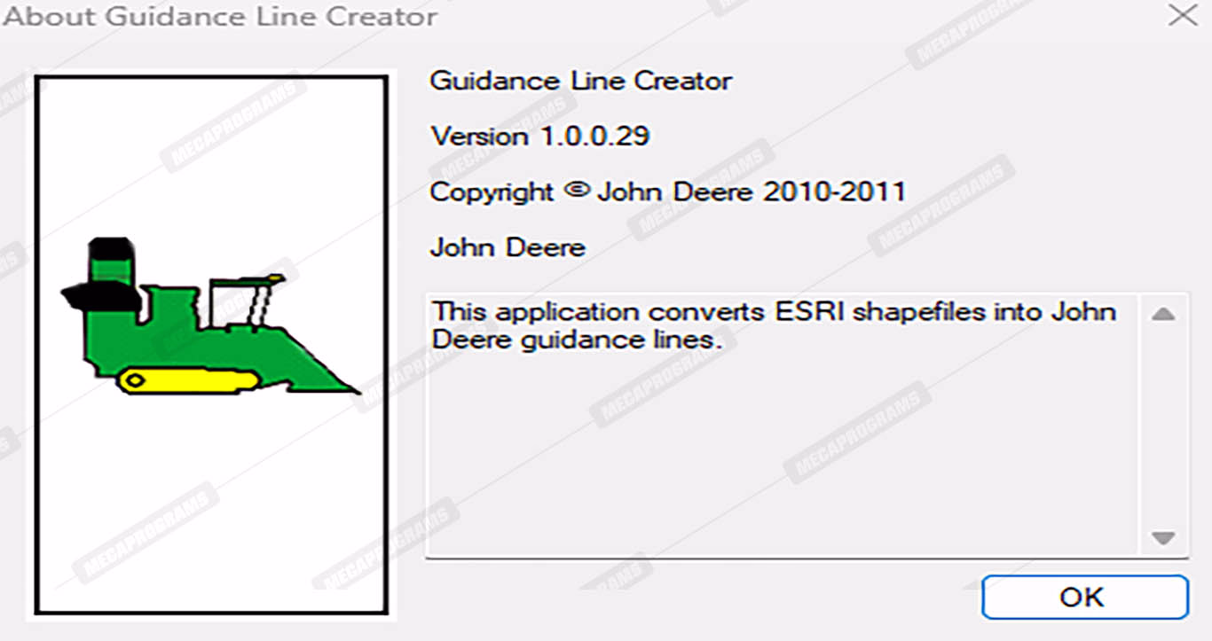 | Description | This application converts esri shapefiles into john deere guidance lines. |