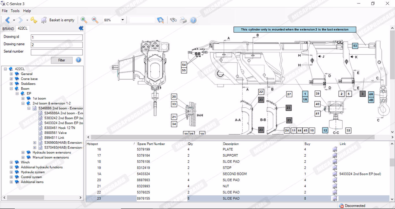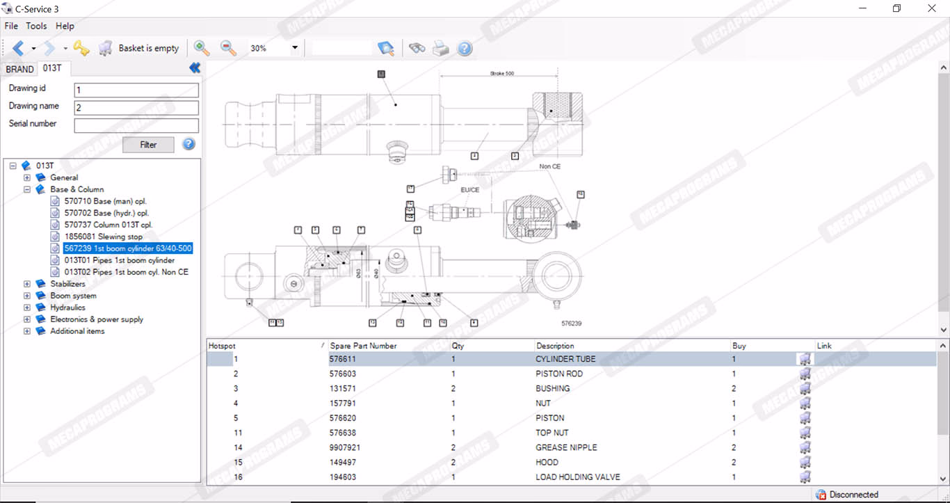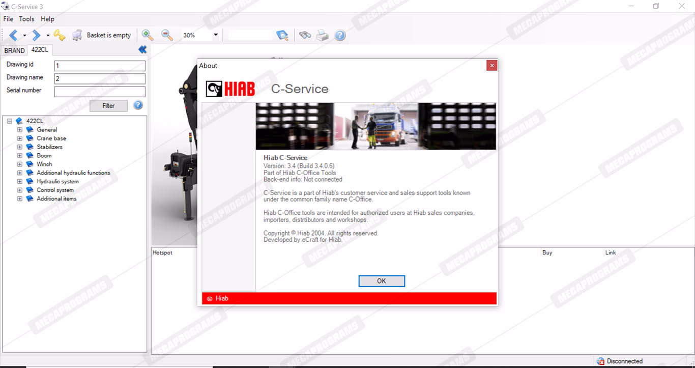 | Description | Electronic program hiab c-service includes a detailed catalog of original spare parts, repair manual, which contains a complete set of descriptions of the technical characteristics of the machinery spare parts, step by step instructions for their operation, special instructions for repair, diagnostics, installation instructions, service information crane hiab. |
