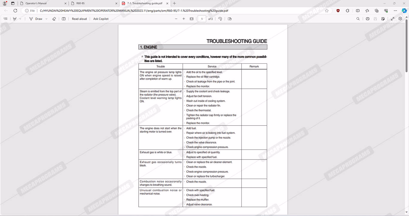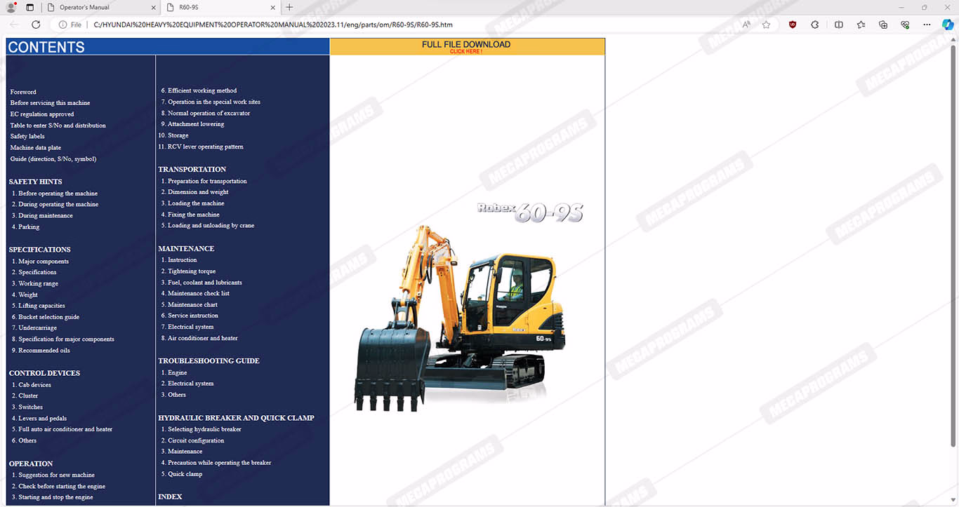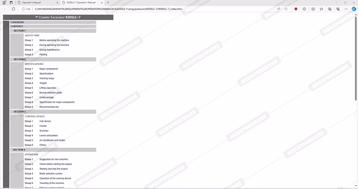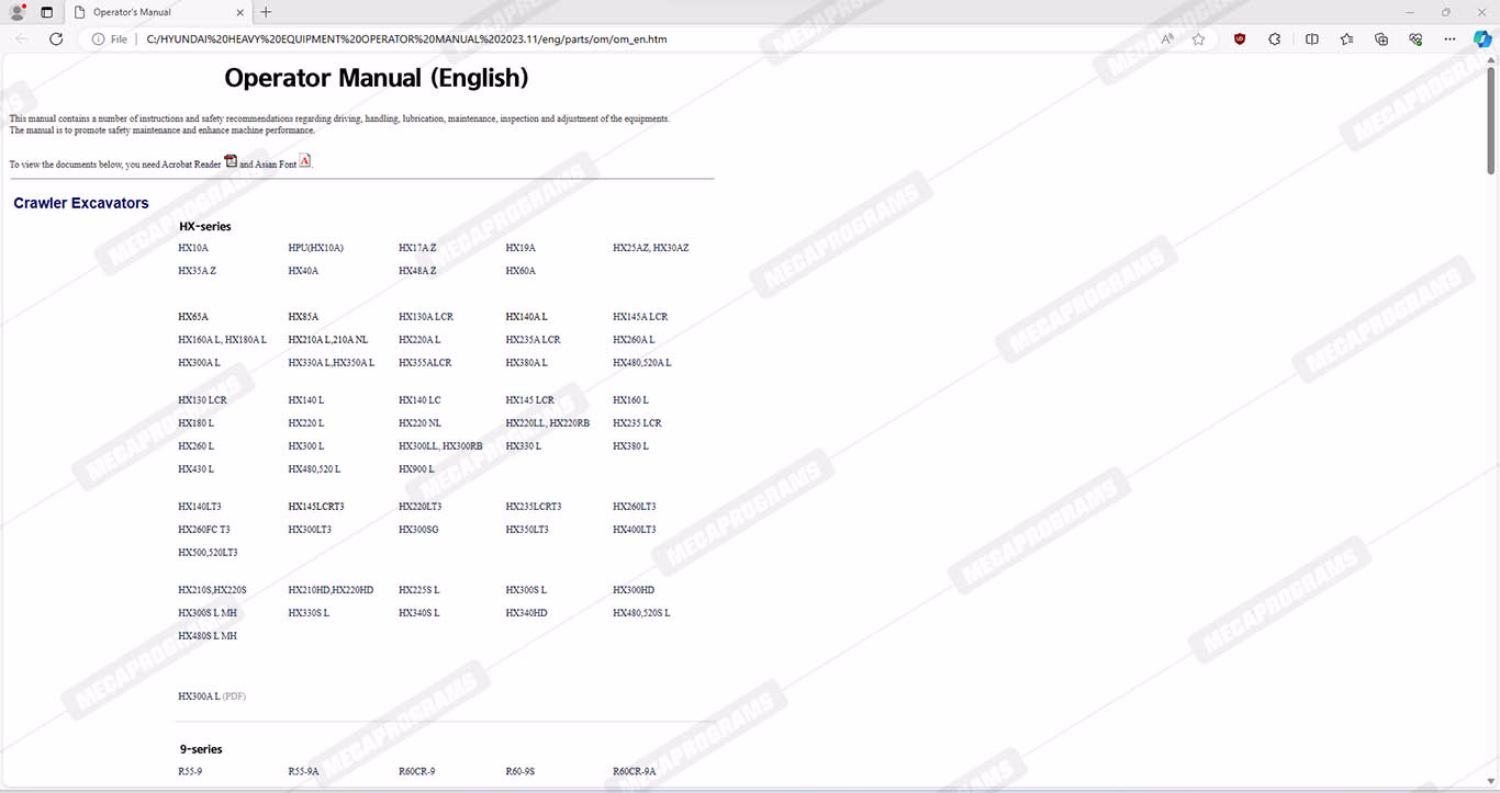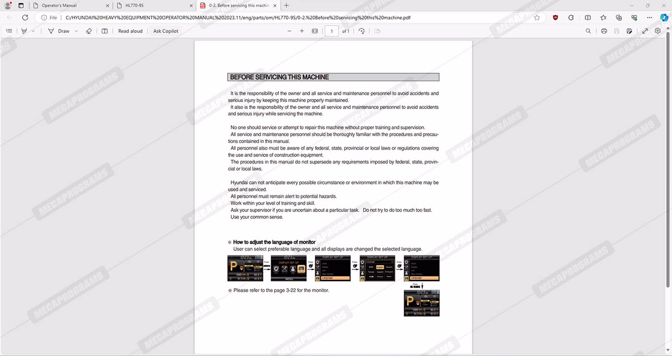 HYUNDAI HEAVY EQUIPMENT OPERATOR MANUAL 2023.11