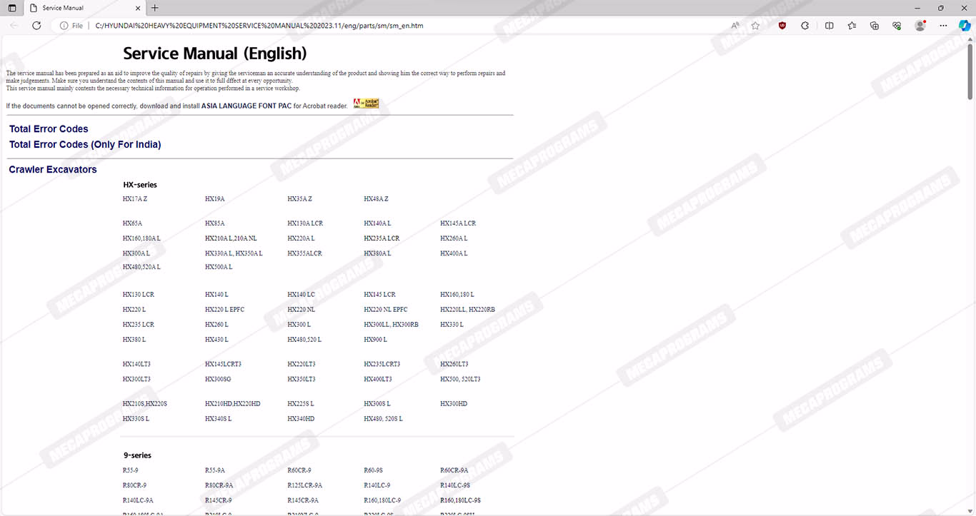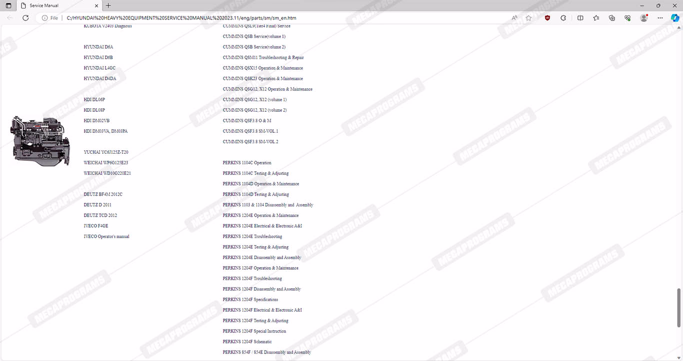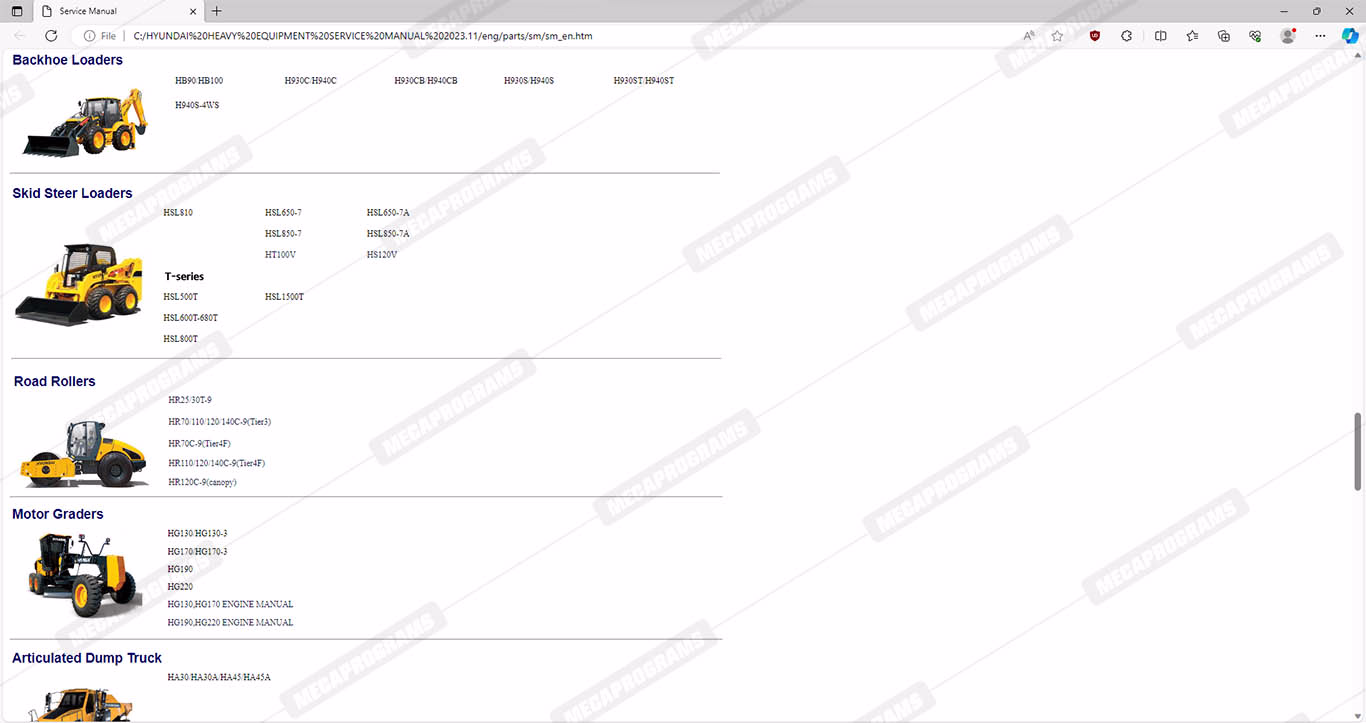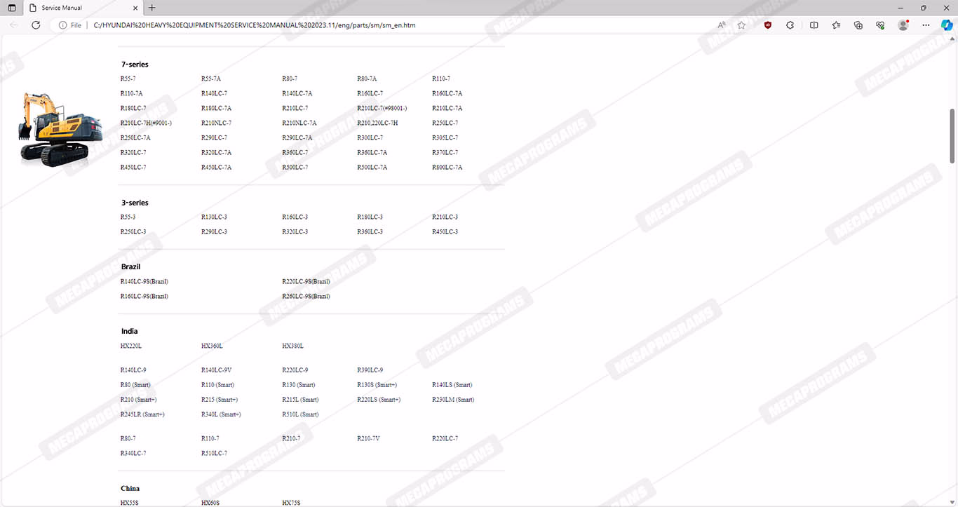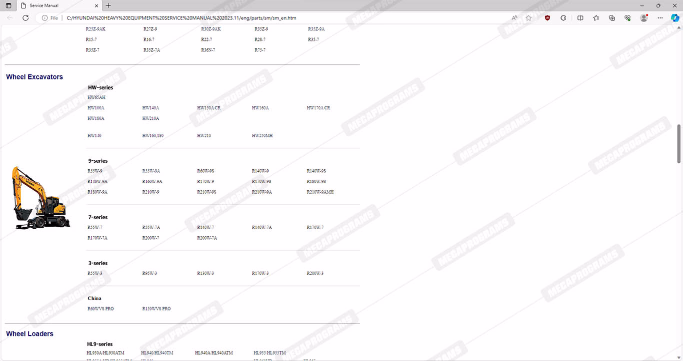 HYUNDAI HEAVY EQUIPMENT SERVICE MANUAL 2023.11
