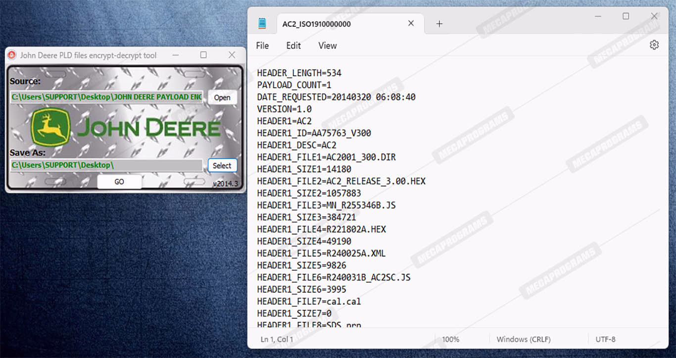 JOHN DEERE PAYLOAD ENCRYPTER & DECRYPTER TOOL 2014.3