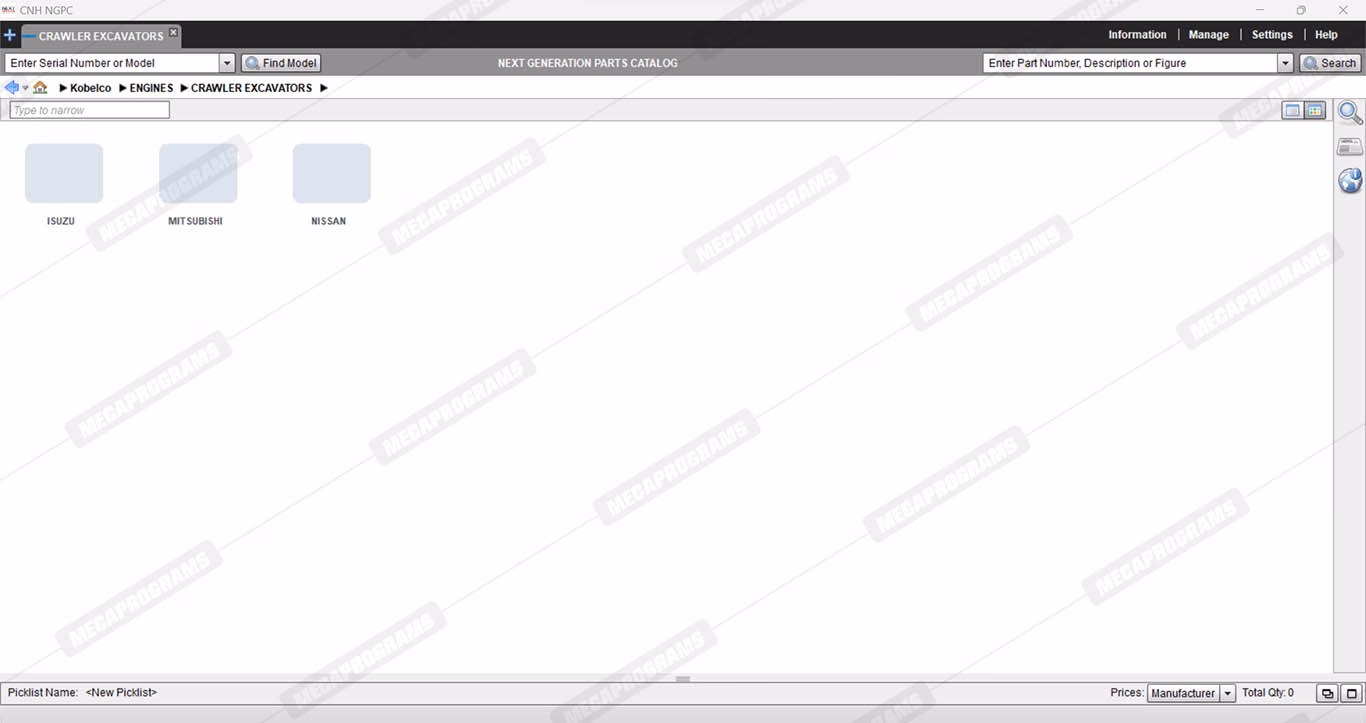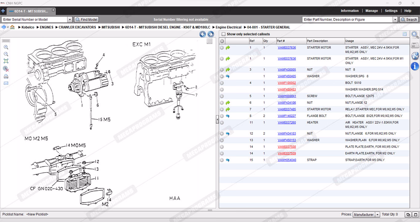 | Description | Electronic spare parts identification catalog for kobelco heavy equipment (crawler excavators, loading curtains, wheel loaders), kobelco light equipment (mini crawler excavators) and engines. |