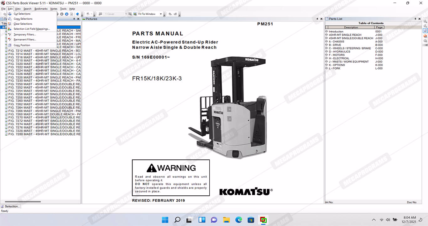 | Description | Komatsu css parts viewer 5.1 the spare parts catalog contains detailed parts information for komatsu equipment models that are manufactured in all usa markets. |