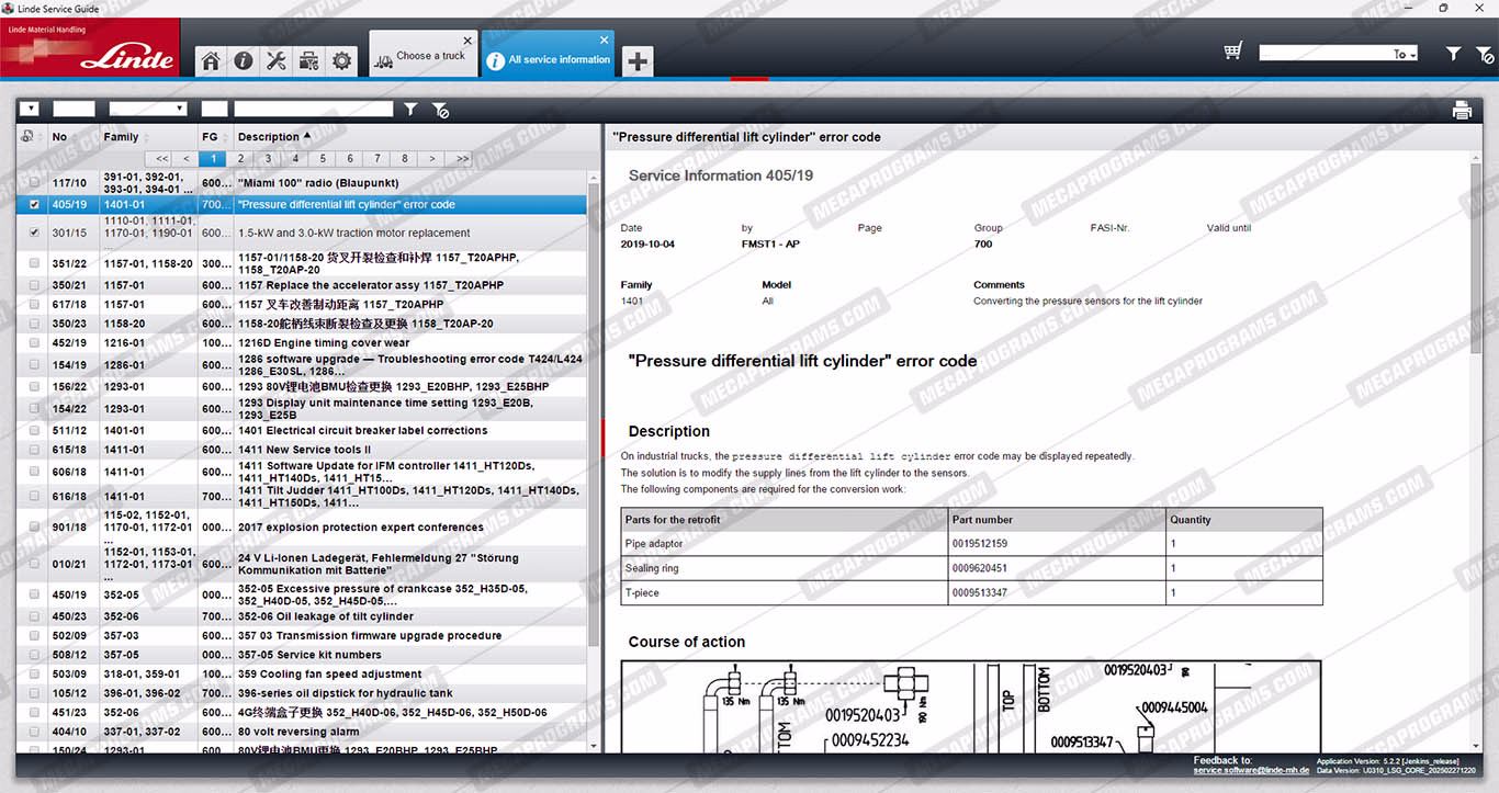 | Description | Linde LSG is an OEM program that combines Linde LINDOS and Truck Expert tools, designed for efficient and user-friendly service of Linde forklifts. |