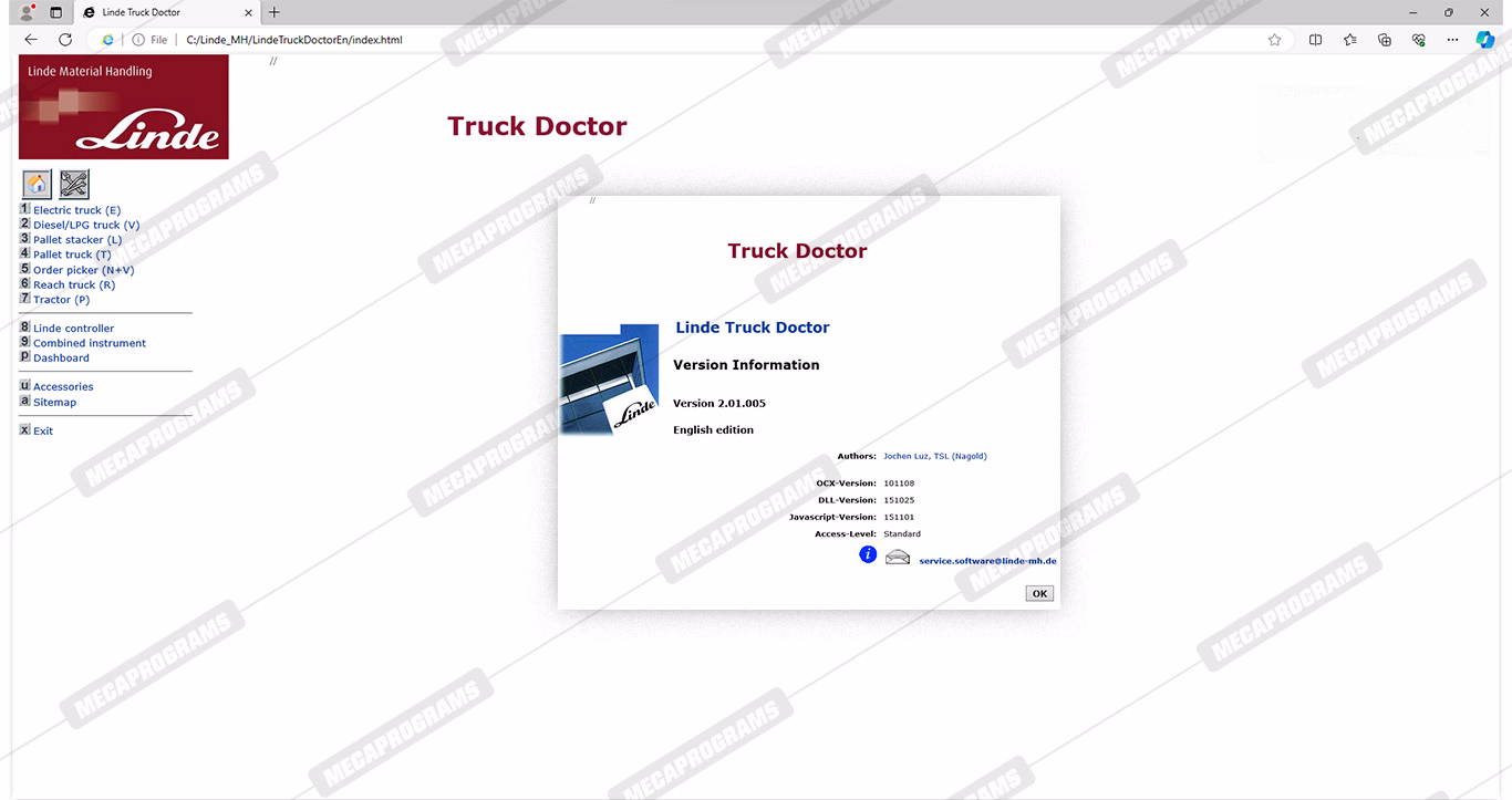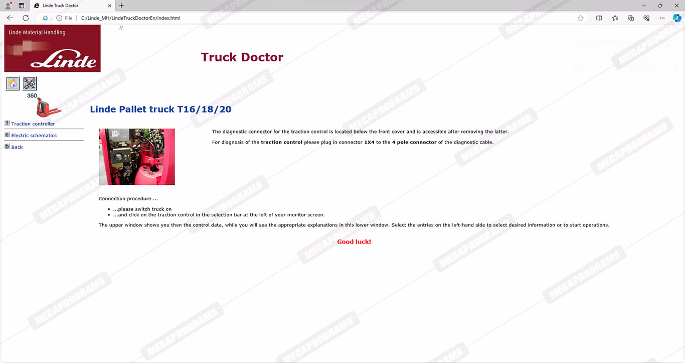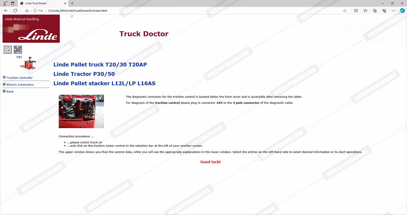 | Description | Linde truck doctor is the diagnostic software for linde warehouse equipment. Also contains wiring diagrams. |
