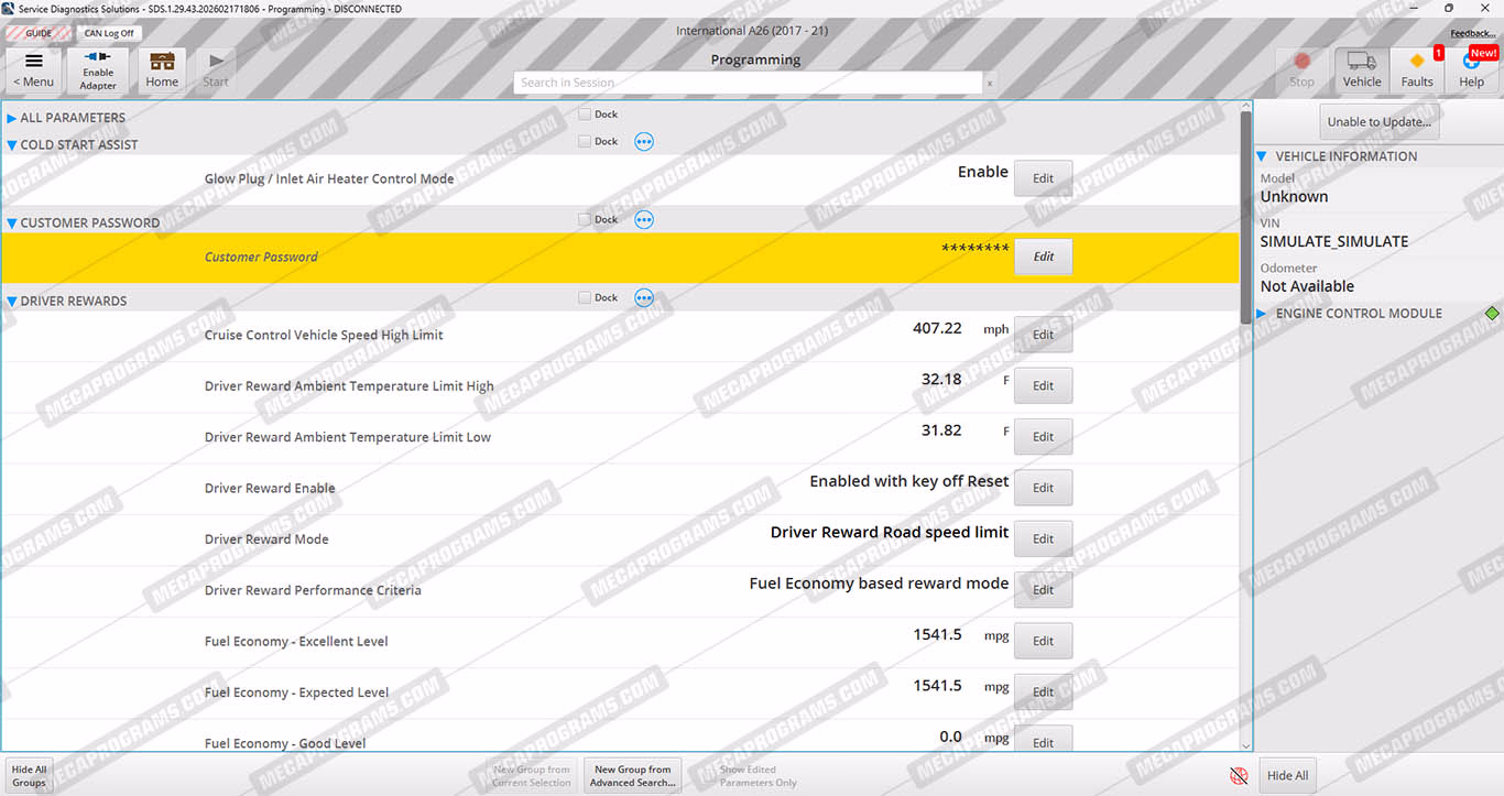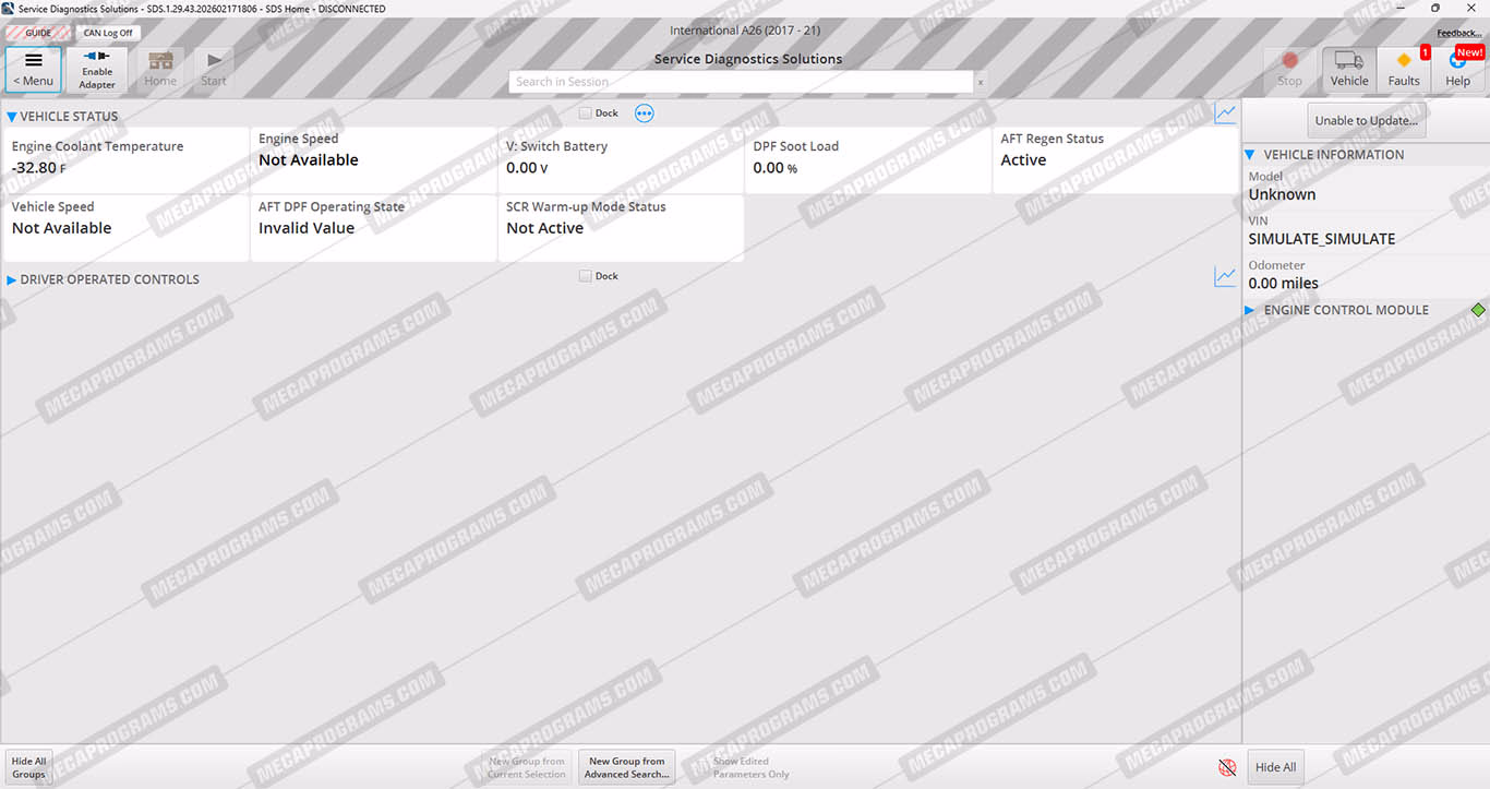 | Description | SERVICE DIAGNOSTICS SOLUTIONS (SDS) IS NAVISTAR'S VEHICLE AND ENGINE DIAGNOSTIC AND PROGRAMMING SERVICE TOOL, ALLOWS YOU TO MONITOR CONTROL SYSTEMS, RETRIEVE DIAGNOSTIC TROUBLE CODES (DTCS), CHANGE PARAMETERS, VIEW AND GRAPH DATA, AND RUN TESTS SPECIALIZED SERVICE BAY SYSTEMS. |