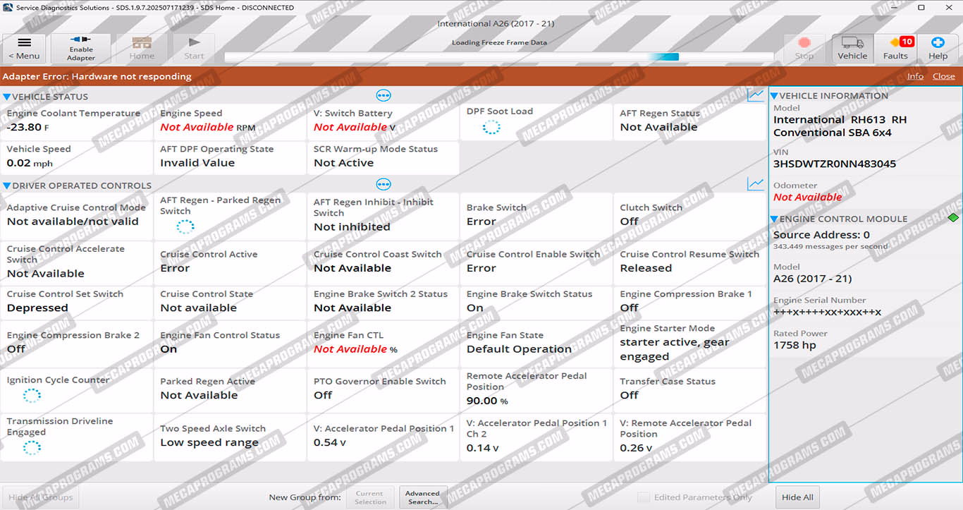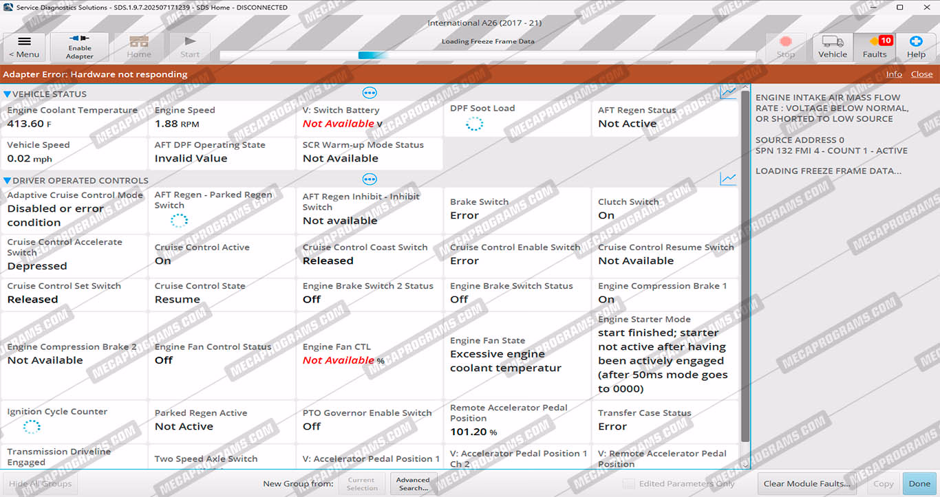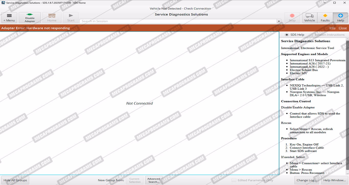| Description | SDS is Navistar's diagnostic tool that monitors systems, reads DTCs, adjusts parameters, graphs data, and runs specialized service tests. |
