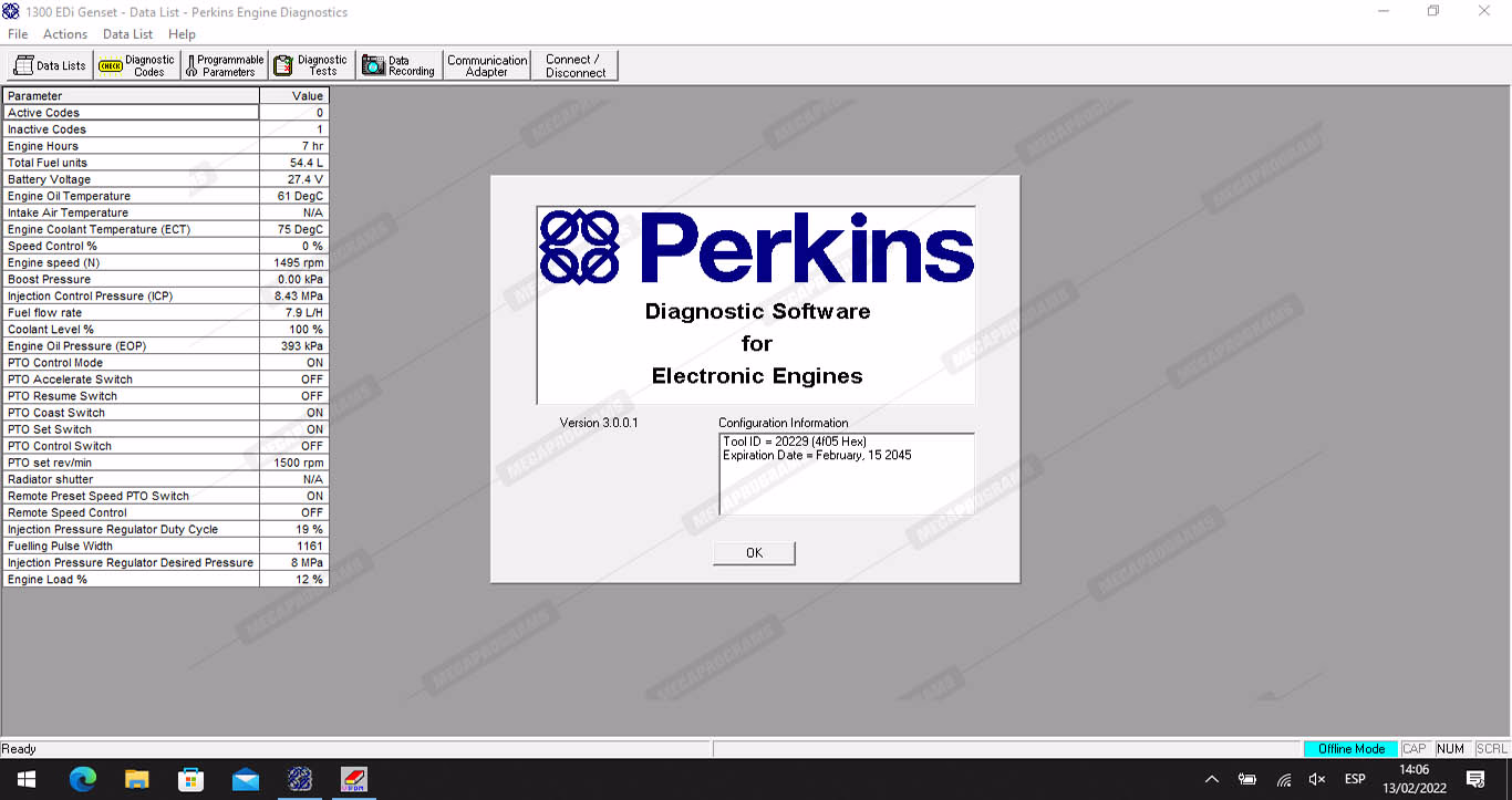 | Description | Designed to diagnose perkins engines: peregrine edi and 1300 series edi. |
