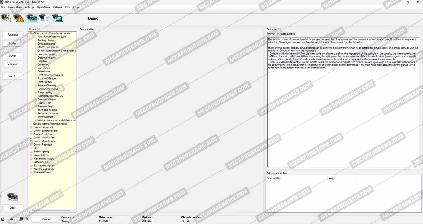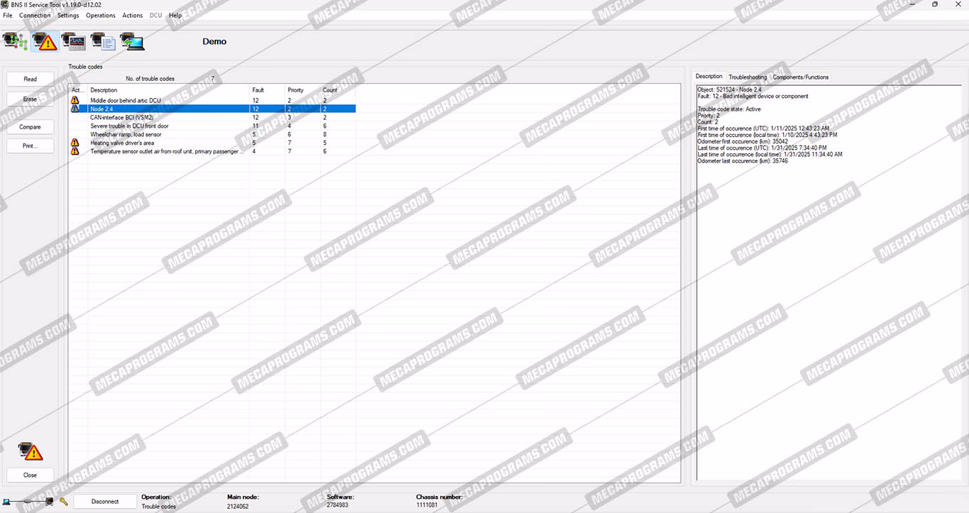 | Description | The Scania BNS II Service Tool (BST) is a software program designed for diagnosing, fault locating, and reprogramming the BNS II multiplexed body system used in Scania OmniCity/Link and Citywide buses. |