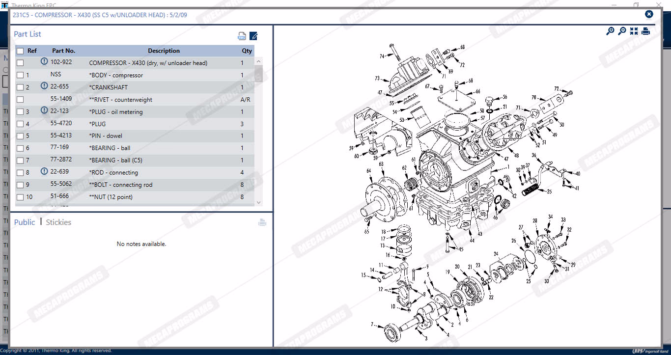 | Description | It contains a spare part catalog for refrigeration machinery, service bulletins, as well as the electrical diagrams of the facilities. Thermo king refrigeration machinery equips most refrigerators, vans and buses. |